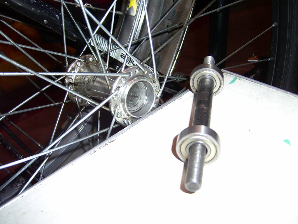 Дело в том что(тут как повезет)....купиш колесо либо с запрессоваными промподшипниками....тобиш если их менять то нужно греть втулку феном и выбивать.....либо не запрессованые....тобиш открутил контргайки на оси и все спокойненько достал....