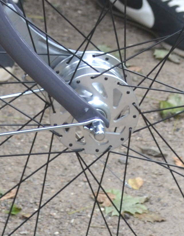 Тут важно не перестараться с длиной перерезаемой части - желательно, чтобы дропы опирались на толстую часть оси, а тонкая просто выступала снаружи для гайки. Подобно тому, как это сделано в шоссейных колёсах: дропы опираются на толстую ось, а тонкая тяга эксцентрика выступает для затяжки.