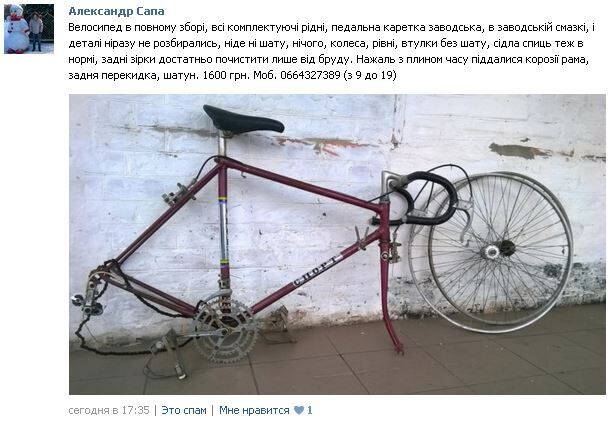 Для примера, вот одна рама "Олимпийки" в родном ЛКП под 400 грн стоит и не думаю, что многие скажут, что это самый плохой вариант, а тут комплектный вел за 600 грн с возможностью торга.