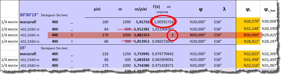 2) подготовить карты разных широт с градусной сеткой с одинаковыми ячейками, например 10 секунд по широте и долготе, наделать скриншотов. Выяснить зависимость величины градусов на пиксель от широты.