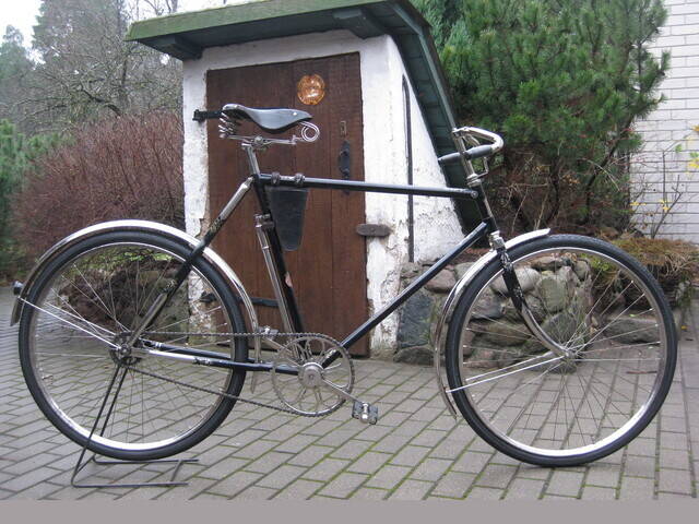 для тех не в курсе событий, немного просвещу.... так должен выглядить велосипед в оригинале. Фото из сети, я изначально не ставил задачу восстанавливать до оригинального состояния, так как дорогое это удовольствие да и состояние деталей не было не ахти... Велосипед реставрировался с целю использовать его в военно-исторической реконструкции...