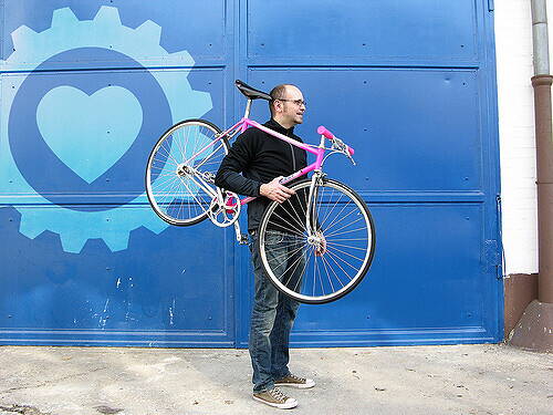 :lol: І як внутрішні відчуття-переживання?А, ну, побачив, отакі ( :facepalm: і :-o ) :D Во! Хлоп з рожевим ровером, лисий як ти і в окулярах як я. Так шо комплекси то всьо :sweetgirls: :lol: