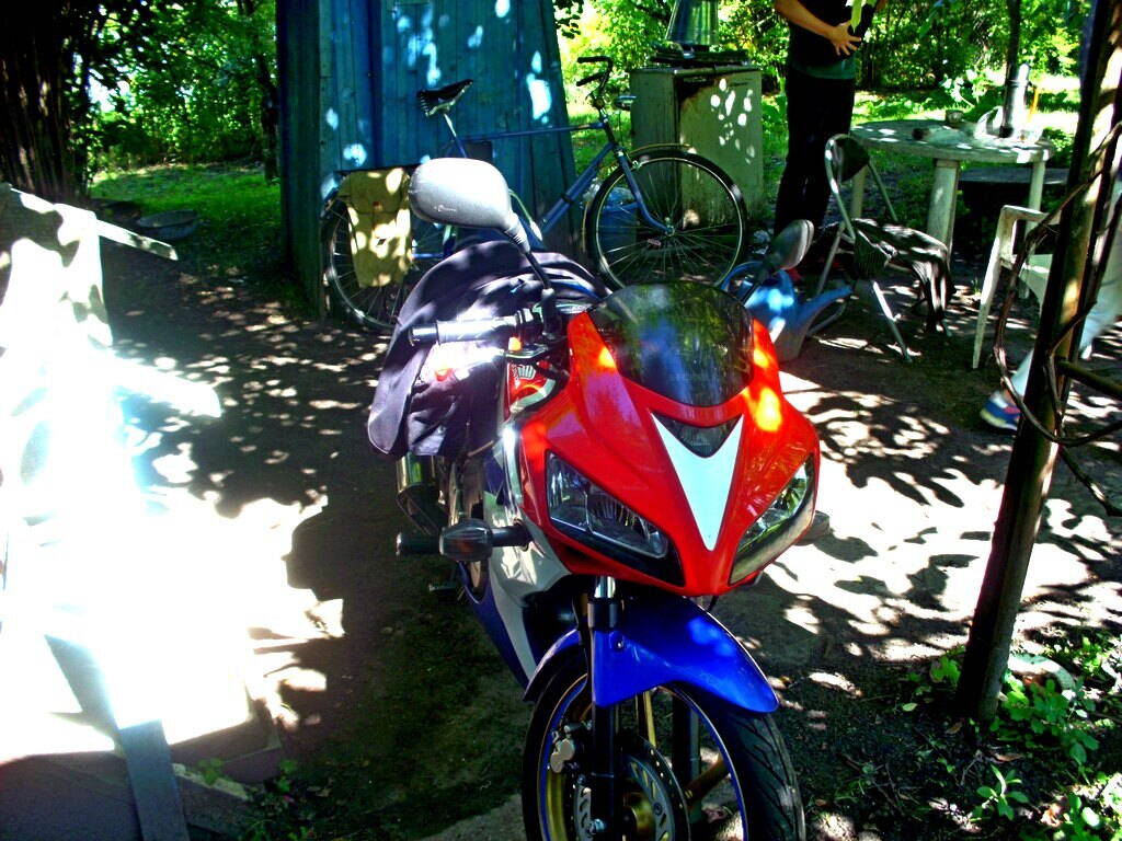 Гы, на таком на днях гости приехали 125 кубов хонда. Антон с Ритой. Не, велы не забросили, просто им ещё в такое поиграться захотелось, понимаю и поддерживаю – я в своё время наигрался.