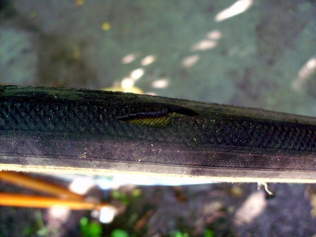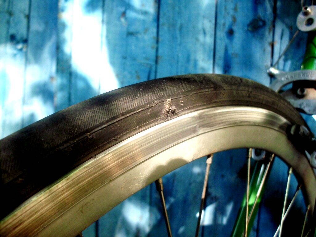 Да, проехался таки сегодня на заклеенной трубке 65 км. В принципе, она вела себя нормально. Но, сцуко, дырка разлезлась. Причём заметного нарушения фигуры шины не вижу. Коллега Большие Колёса говорил – заклеить, я поленился. Корд, мол, целый, да и латка нужна армированная, а у меня таких нет. Ну хз, запаской будет. Будет не лень – переделаю.
