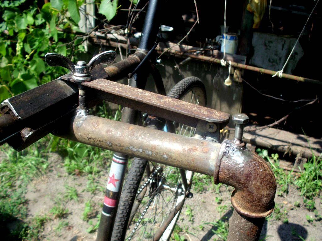 Если нельзя закрепить за горизонтальную трубу (например, когда велосипед дамский или складной), головка поворачивается и велосипед крепится за подседельную трубу.