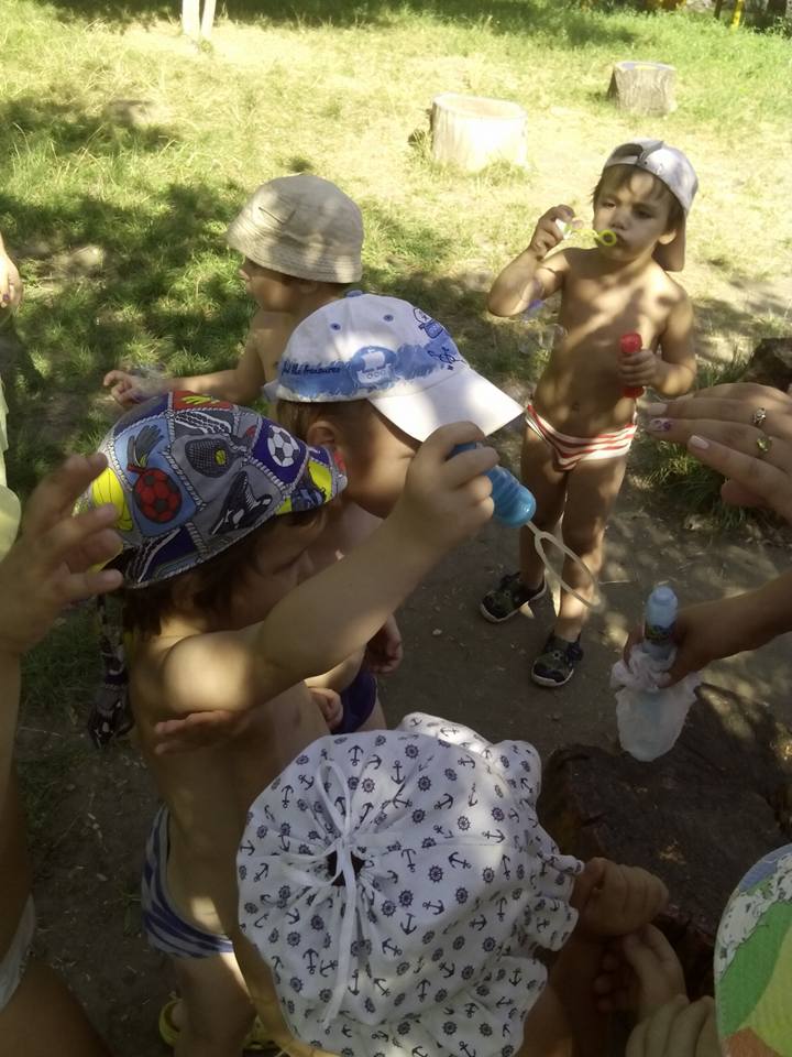 Мыльные пузыри порадовали всех от мелкотни до воспитателей. Дети скакали, ловили, выдували пузыри. Гонялись друг за другом. А особо смелые даже попробовали их на вкус. Правда вкус не очень и прошлось мыть рот потом, но зато теперь есть определенный жизненный опыт.
