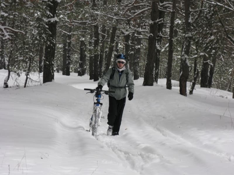 Все-таки дороги от Фигуровки были нераскатаны машинами. Лишь некоторые смогли поехать по узкой заснеженной колее. Чуть рулем в сторону, и сразу теряется баланс. Я считаю, что была хорошая тренировка в технике езды на вело. В итоге через 4 км, я основную группу прождал 15-20 минут, так как большинство шли пешком.( даже успел дрова подготовить костру).