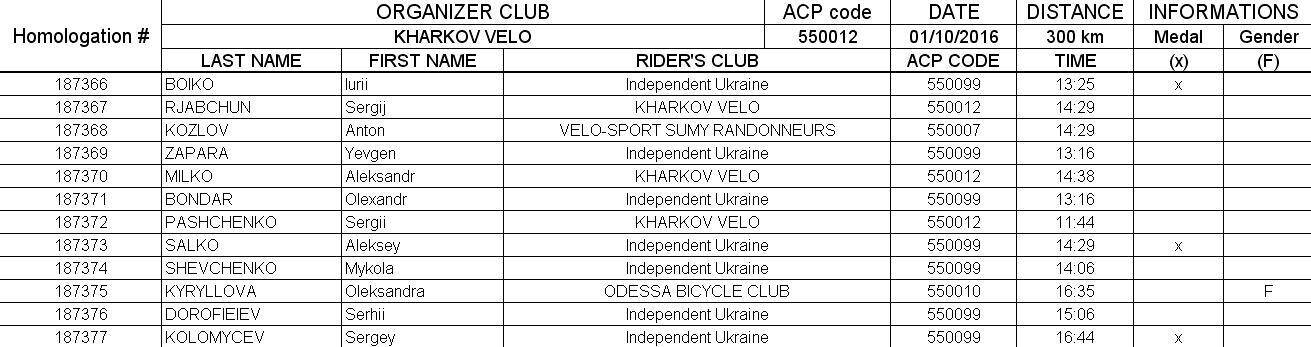 Ли Си Цын Заявка на бервет 300км 1 окт 2016