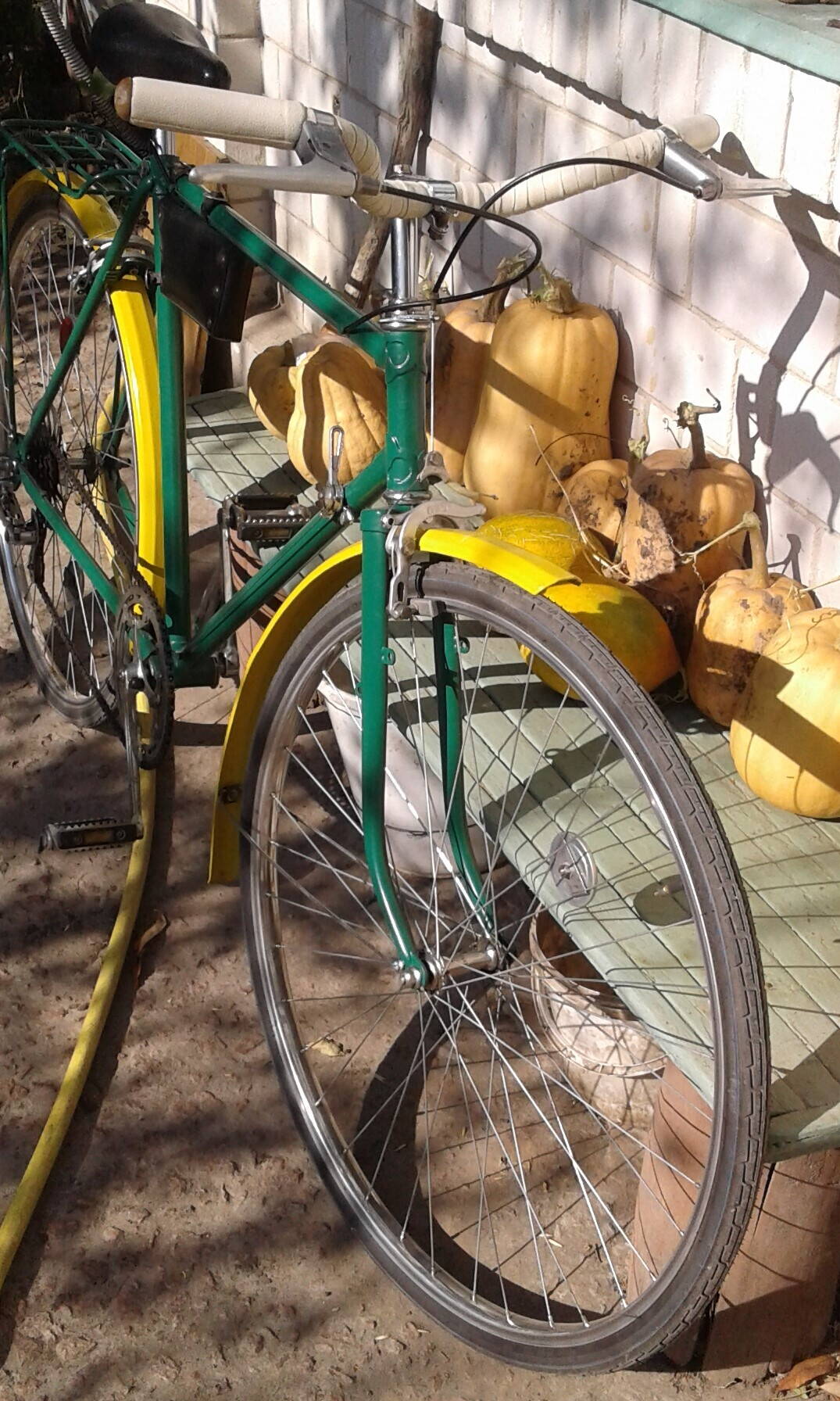 :-D kisa Велик едет хорошо, по городу гораздо накатистее, быстрее чем алю МТБ. Дорожное седло на реставрации, обтяну его кожей. Ищу пружины для дорожного седла. Спасибо за совет по тормозным ручкам, изменю положение. Хомуты крепления тормозных ручек сделал новые, из тонкой нержавейки. Бюджет: пескоструйка рамы 120 грн, шины с камерами 600 грн, вал каретки бу с Куреневки 40 грн, спицы 100 грн., кожа из сумки жены -бесплатно. Всего 860 грн.