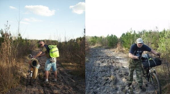Да, классическому турингу не возбраняется покидать асфальт. На хорошей, не слишком горбатой укатанной грунтовке такой вполне себе едет – шины 32 мм уже позволяют. В песок и щебень велосипед, конечно, проваливается. Однако, толщина шин допускает временно приспособить велосипед и для них. Если максимально снизить давление, пятно контакта значительно увеличится, что может выручить на неглубоком песке.