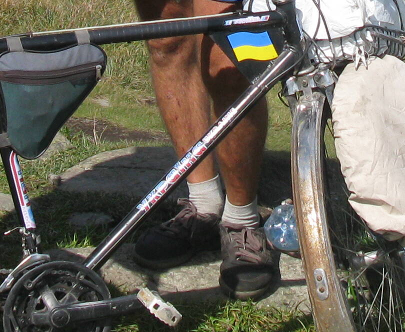 Дядько цей з'їздив на своїй "Україні" не тільки Україну, але й велику частину Росії, в тому числі Далекий Схід і мив колеса у Північно-Льодовитому. Як бачимо у проблемному місці рами він заздалегідь наварив косинця. Особисто я б не хотів на "Україні" далеко пхатись, але я ще раз кажу, що подорожувати можна на будь-якому типі велосипеда. Практично любий можна підпасувати під мандри. Це не гонки. В поході вся навкологоночна хєрня, якою пробуємо часто страждати, як то жорсткість, вага, одинарні обода неодинарні, вузькі покришки, ставити не ставити тріпл мтб, кірпічно не кірпічно, не має вагомого значення. Має значення правильне положення тіла, зручна сідуха та ергономічний руль :smile: