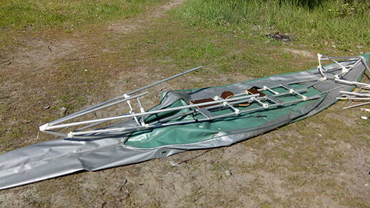 Понравились обводы — если угодно, нечто среднее между «Тайменем-2» и RZ. Но совершенно не понравились конструктивные решения каркаса. В частности, то, что шпангоуты касаются шкуры: в этих местах она была неоднократно пробита. Да плюс еще массивные, но непрочные пластиковые кницы. Вообще, каркас, как по мне, переутяжелен.