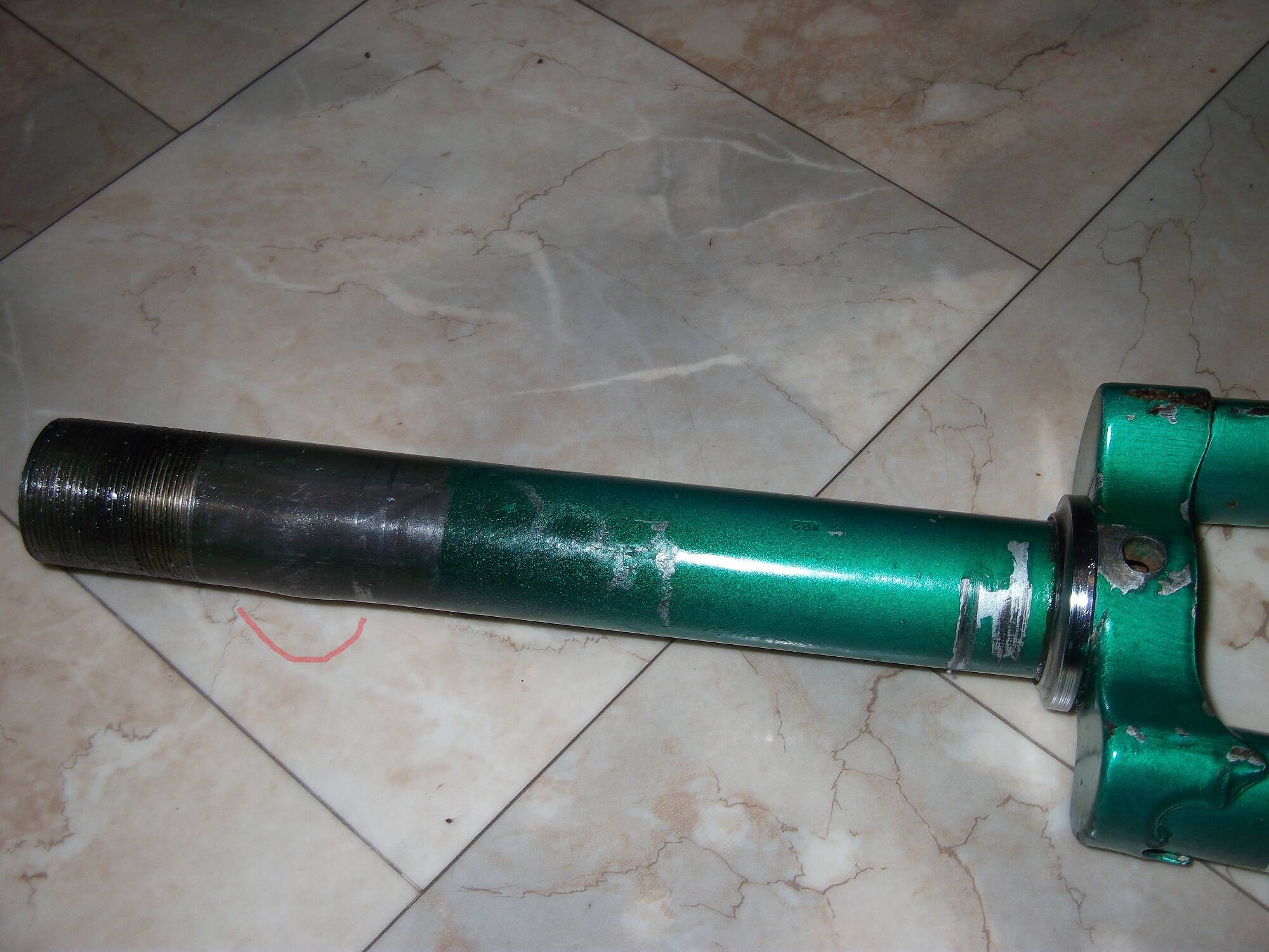 На вилке в районе резьбы вздутие как будто грели и гнули.