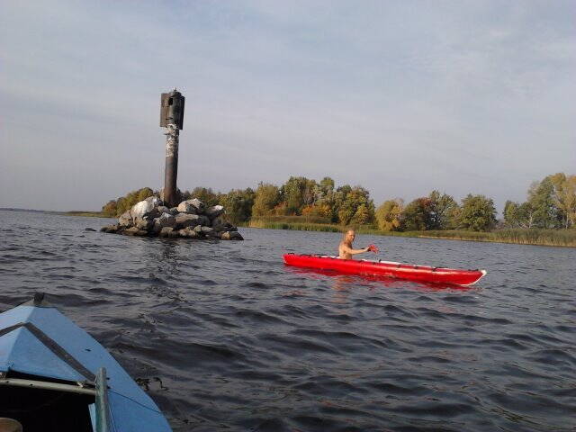 Плавали с товарищем, велойогом, по Каневскому водохранилищу, при сильном боковом ветре, я на Салюте- он на Игле откровенно отставал.