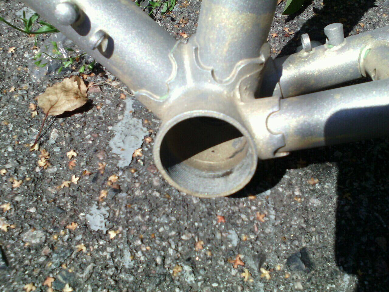 За 500 гривен я получил раму 60го года, с родной вилкой, рулевой и чашками каретки. К сожалению рама была уже не один раз похабно окрашена, а родной окрас уничтожен наждачкой, за долго до того как она попала ко мне.