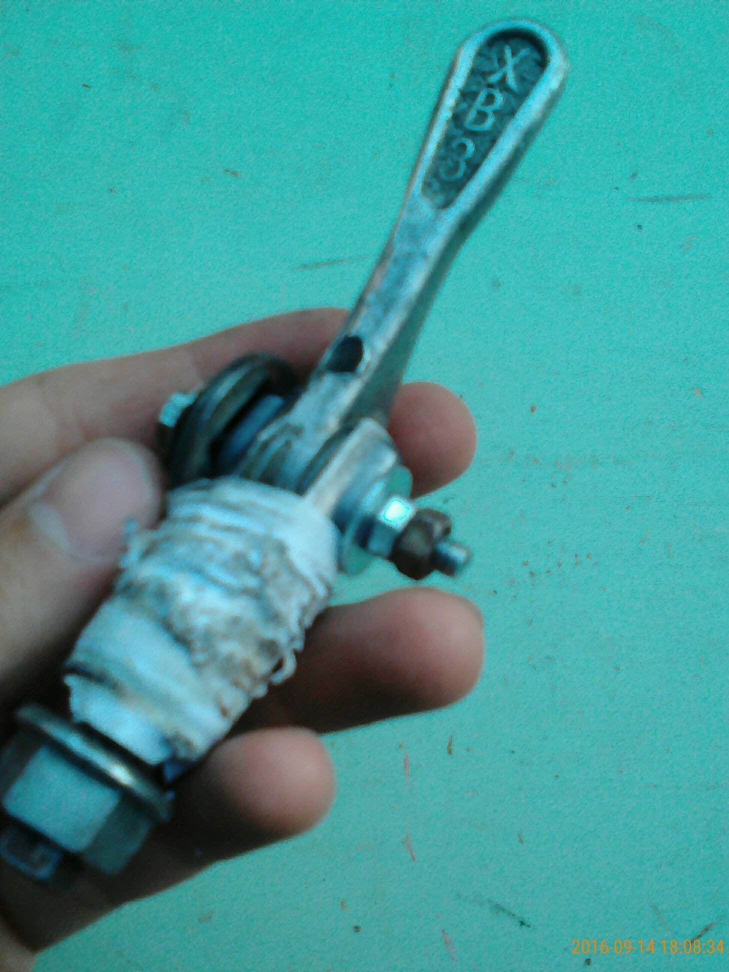 Я прикручивал болт с большой гайкой от оськи заднего колеса, это дало возможность удлиннить нашу самоклепную манетку, изолента служила уплотнителем. Конечно это не особенно помогло, манетка тяжело вставлялась в руль, но легко прокручивалась...
