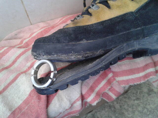 Тоб-то стояла такаж версія як в оригіналі, але "лайт" - для міста. Вібрам там була тільки резина. Як видно на світлині, підошва там составна - складається з декількох шарів. І звичайно після першого ж походу резина трохи почала відставати від основи. Але основа береться не вібрам, і ботинок виготовлено не компанією вібрам.