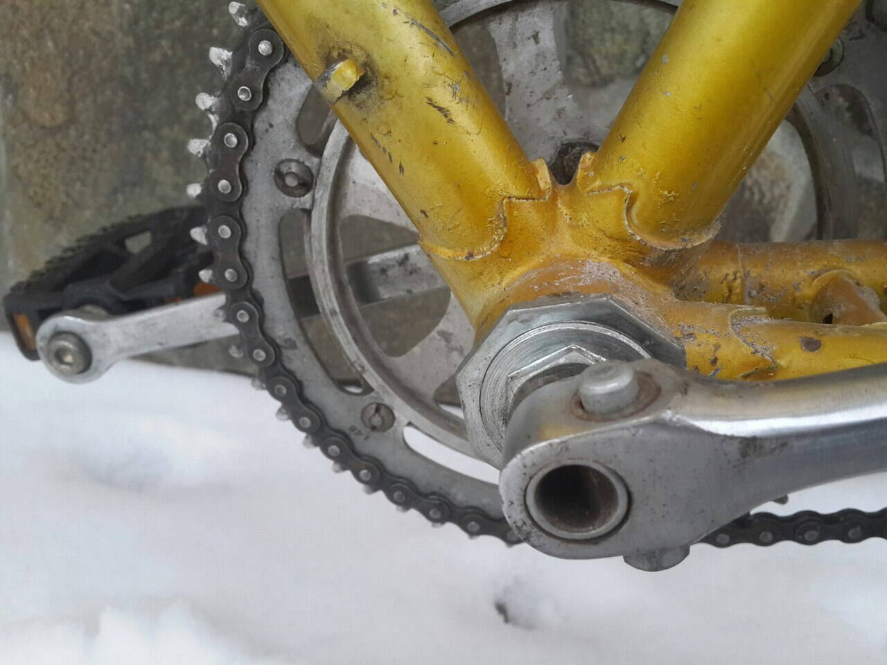 Я писал, что видал немецкий шоссер с такой примочкой, но там сквозная дырка в оси была значительно меньшего диаметра.