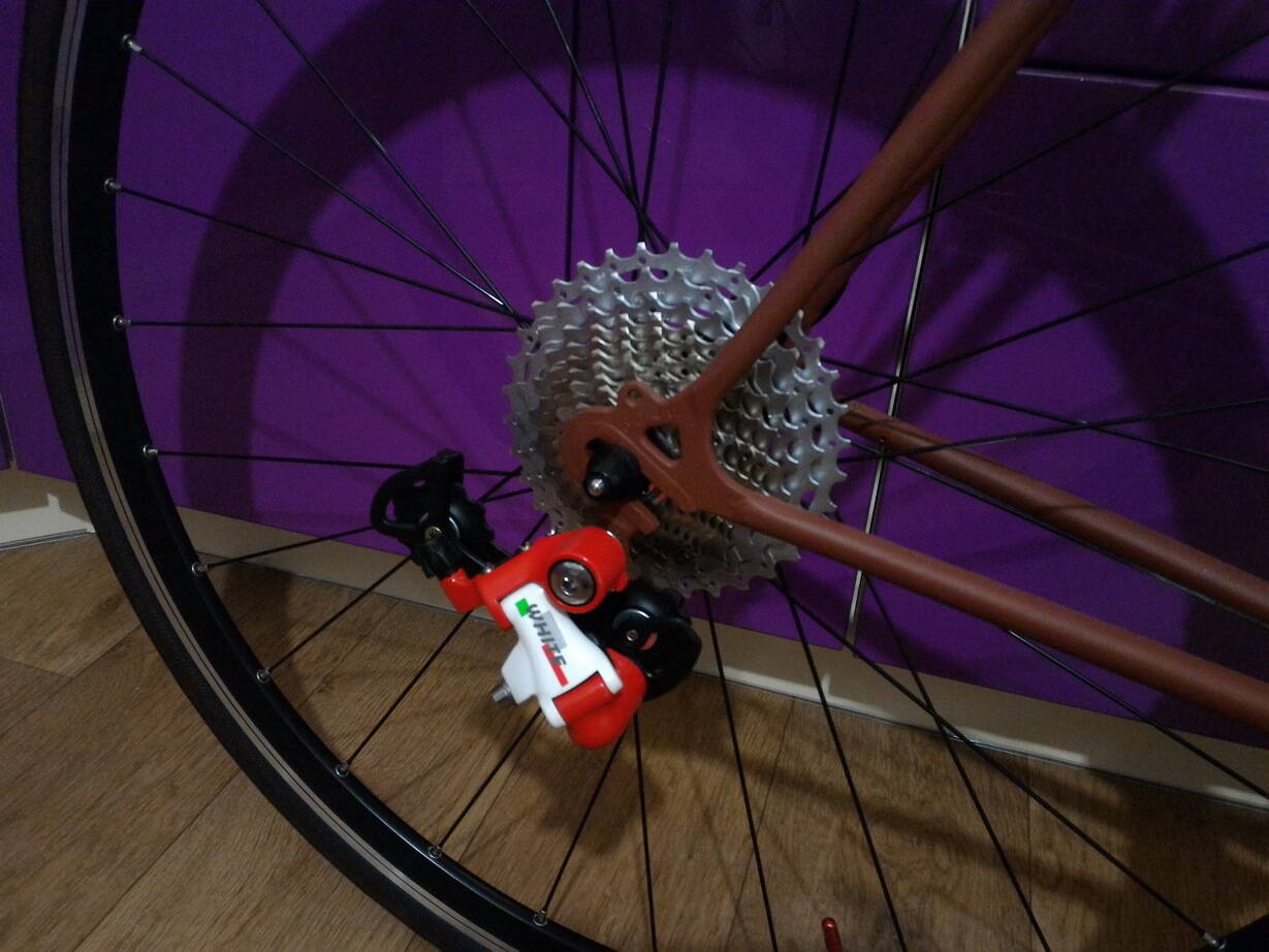 Это грунт, дальше будут напаяны латунью крепеж для бутылочки и бонки для тросиков( их заказали, но токарь забывчивый зараза), после все понесется в порошковую покраску (для долговечности), после все за матируем, покрасим автомобильной нитрой и нанесем аэрографию. Была идея прокладки тросиков внутри, но не предназначенная рама потеряет в жесткости + лишнии перегибы ухудшат переключение ( в местах завода тросов в раму).