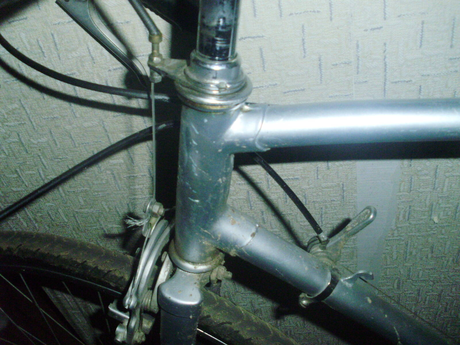 ...Потому что если вел здесь только один, то эта рама – какие-то очумелые ручки. Разные задние дропы – вроде СШ (левый В-553, правый поздний), подседельный и лобовые узлы – похожи на В-54. Нет нижнего мостика. Вилка и весь обвес – стандарт СШ (кроме тормозов и задней перекидки). Тормозные ручки с резинками. Разводка тросиков переключателей под кареточным стаканом. Какой-то чудной спецзаказ?