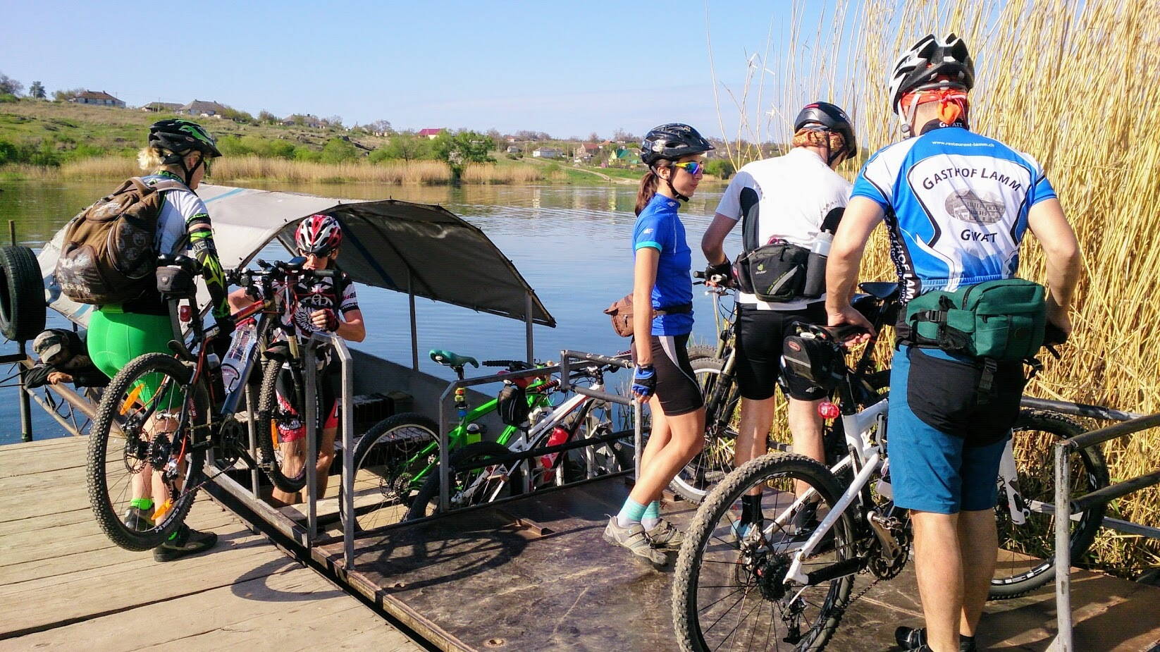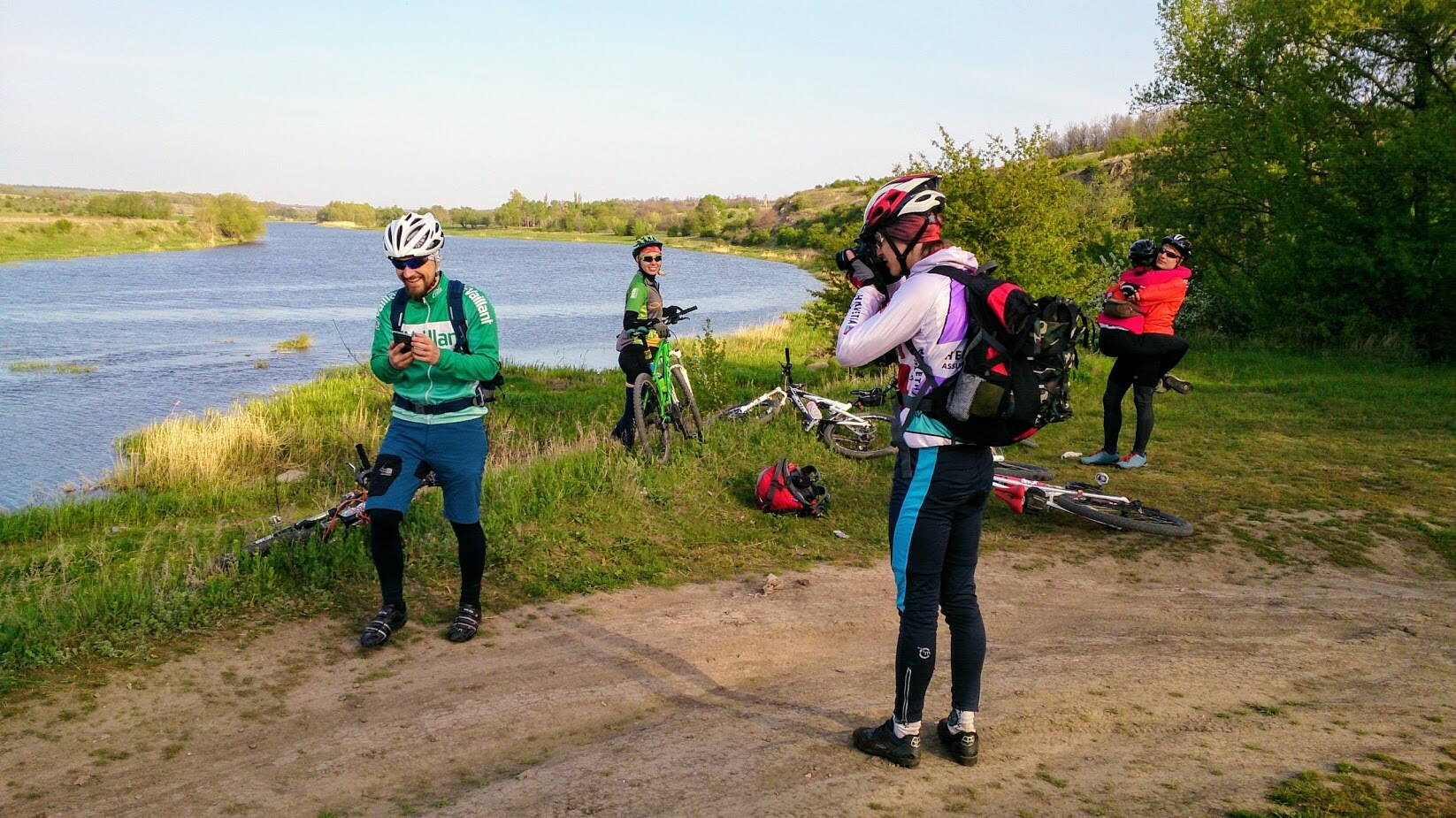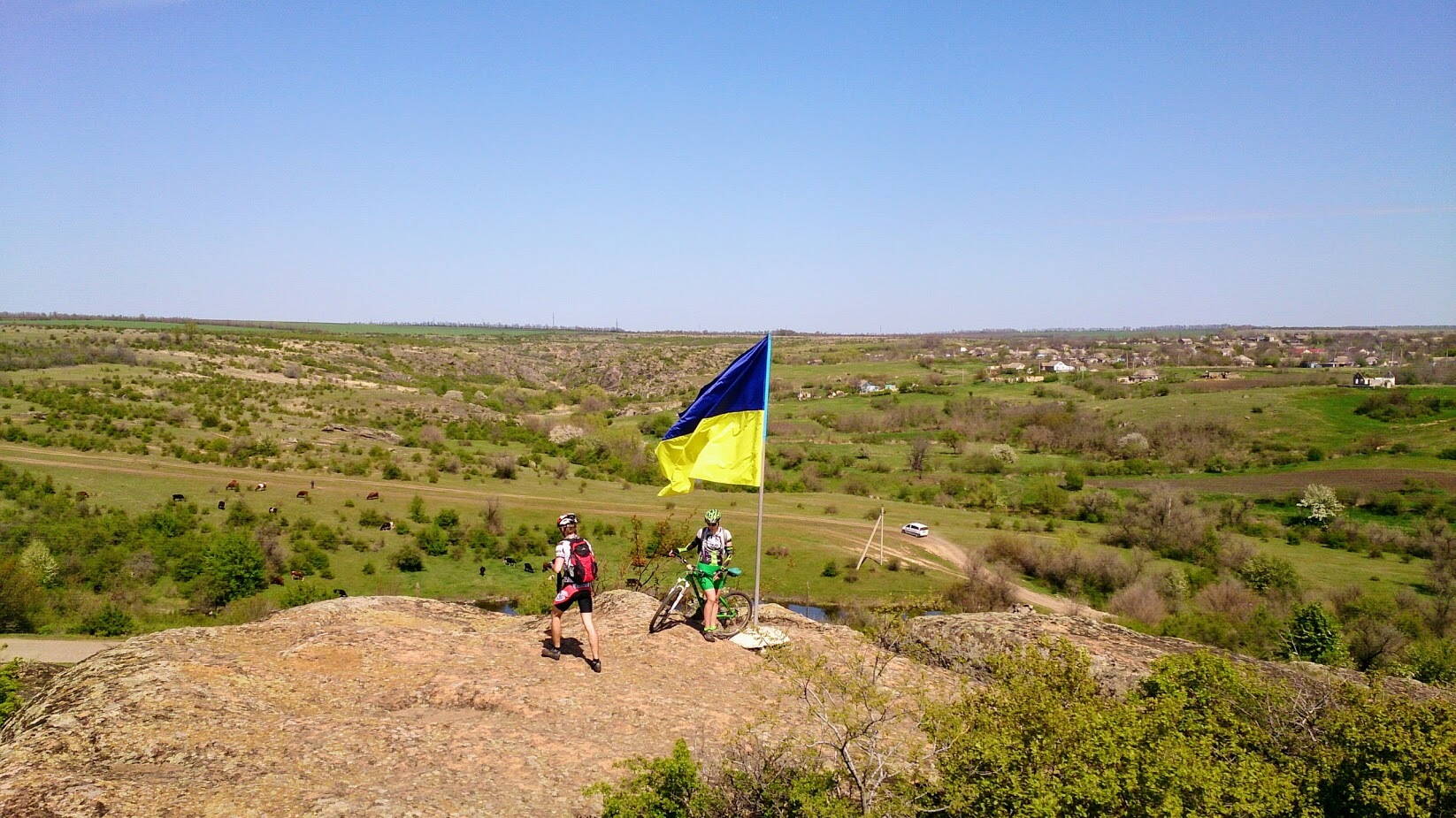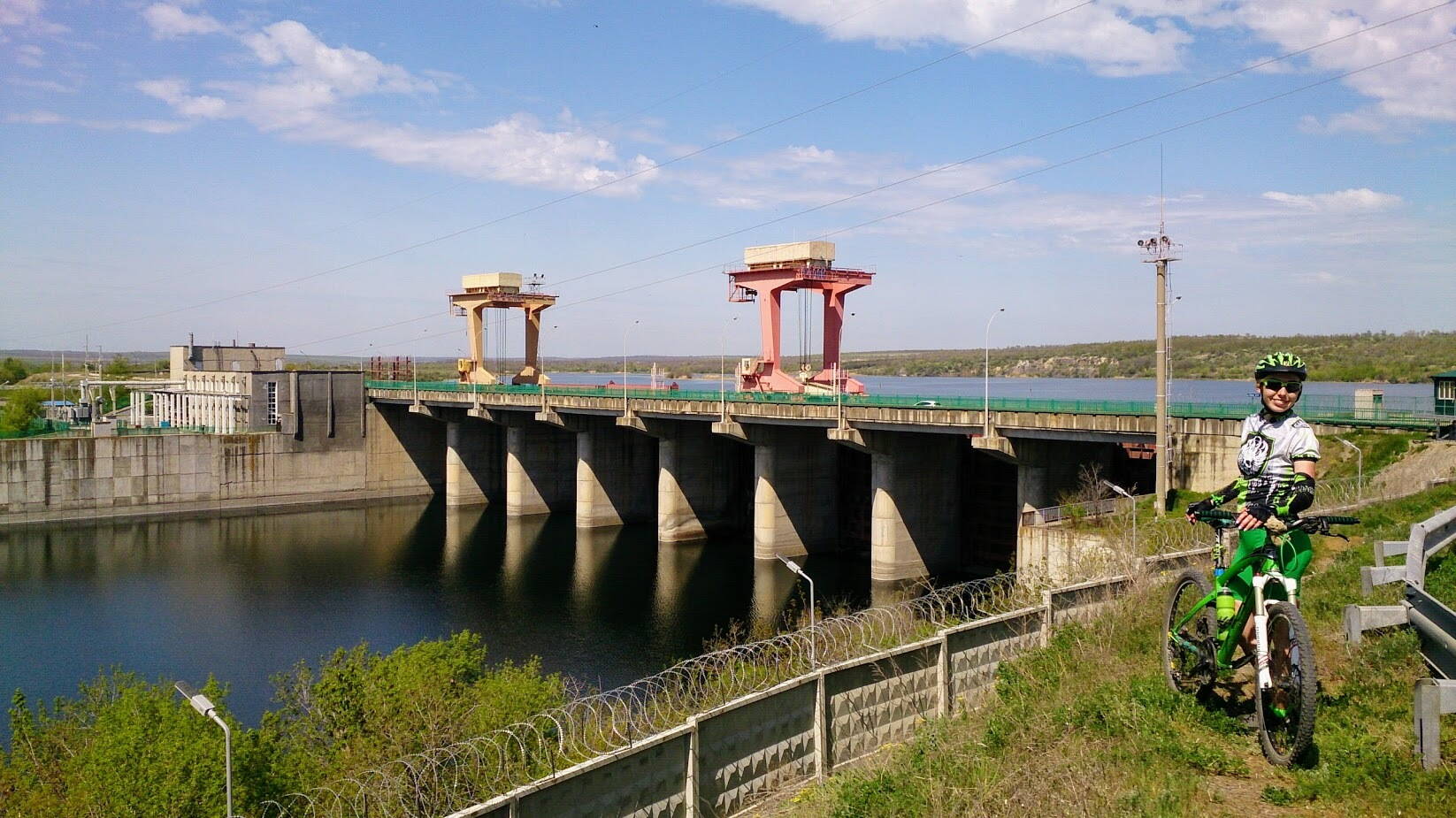 96 км незабываемых красот. Маршрут 2-го дня начался со спуска к Ю.Бугу до паромной переправы, чтобы попасть на правый берег. К нашему удивлению там еще ходила и лодка, как оказалось, более быстрый способ перебраться через реку всего за 3 грн . Паром более медленный + ожидание загрузки 1-2 машин. Дальше наш путь пролегал вдоль Ю.Буга и Александровского водохранилища с прекрасными видами Бугского Гарда до плотины Александровской ГЭС, по которой снова вернулись на левый берег по направлению к н.п. Трикраты и Актово. Спустившись к пойме р.Арбузинка столкнулись с преградой в виде полуразрушенной дамбы, к нашему счастью промоина была засыпали камнями. Проехав небольшой лужок, и снова "спідкала невдача ниших спортсменів" :facepalm:, - поле с перепаханным 2 км участком дороги вдоль Арбузинки. Добравшись до Трикрат и его магазинчика ворвались в "Трикратский лес", где пришлось отмахиваться от двух дяденек, которые хотели сбрить по 5 грн с каждого за посещение этого леса аргументируя свое требование какими-то бредовыми баснями и какой-то там бумажкой. Выехав из лесу, сразу попадаем в начало Арбузинского каньона, все выше и выше поднимаясь по тропе попадаем на одну из основных смотровых площадок - камень "Пуп земли". С этого места открываются виды на Актвоский и Арбузинский каньоны.Получив заряд впечатлений, сделали смотровой кружок Актовского каньона с обеих сторон. Тут даже не знаю ка описать, нужно просто смотреть :"": на этот необычный рельеф и каменные образования с протекающей внизу речушкой. С другой стороны близость этого места к населенному пункту и дорогам, делает его каким-то обыденным из-за наплыва большого количества людей и транспорта. Маршрутками и автобусами туристов подвозят прям на плато самого каньона. Увидели, посмотрели и в обратный путь :cool:.