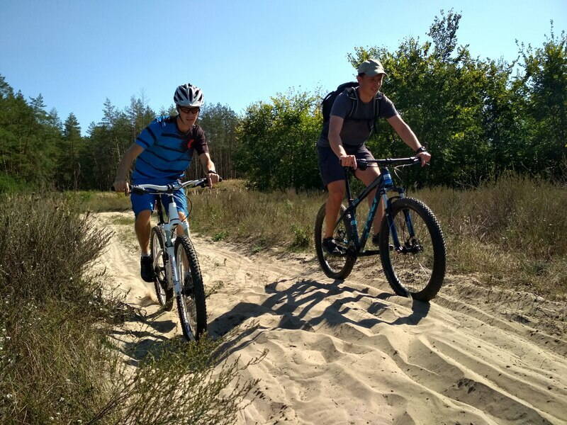 На песке байк творит невероятное, можно переехать из одной рыхлой колеи в другую сыпучую колею. На любом обычном горняке, в такой колее вы всегда стараетесь держать руль максимально прямо, а тут вы можете выбирать траектории и даже местами ехать накатом! Была возможность сравнить с найнером, на резине 2,4 и приспущеном давлении. Проехать по той же колее удалось, но с трудом и нужны навыки. На 27+ наши эксперты-новички проходили тот же маршрут без шатаний и колебаний.