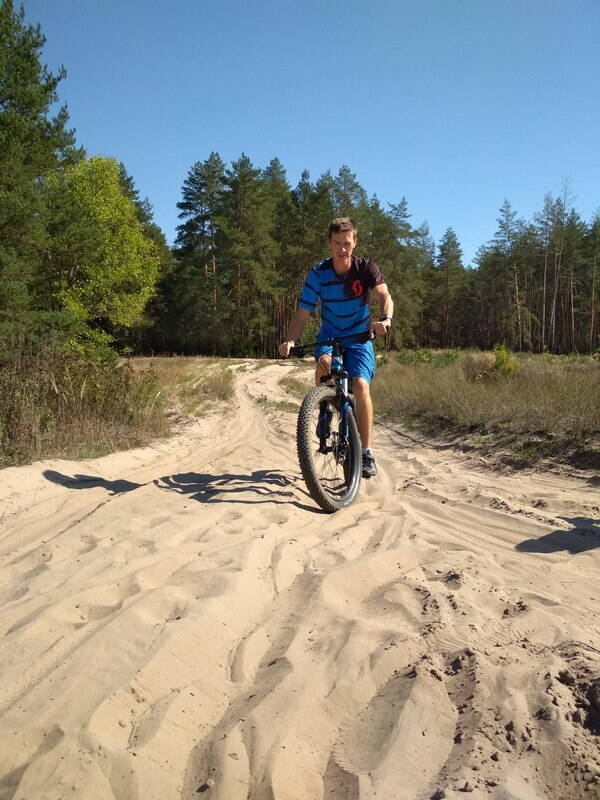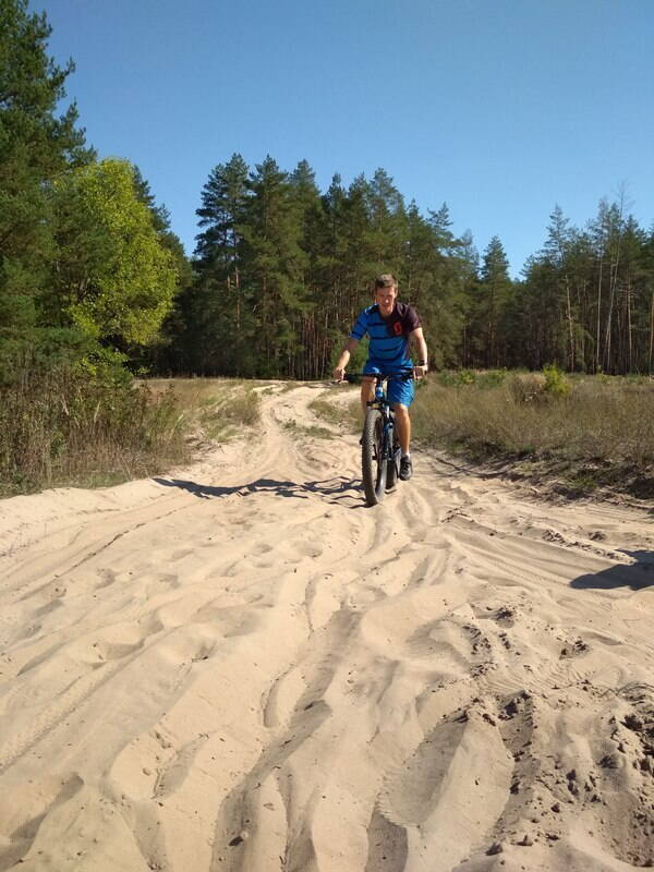 Вот ссылка на кино https://www.youtube.com/watch?v=Tx-tQlvFJIc&feature=youtu.be как Андр бороздит вспаханный песок. Выглядит оно легко и просто. Но видео не передает глубины и сыпучести песка. Кажется что велосипед едет "по верху" На самом деле так оно и есть, я на своем так делаю иногда, когда оказывалось что очередная лесная дорога перепахана добрыми лесниками. Но обычный найнер там бы увяз по обод.