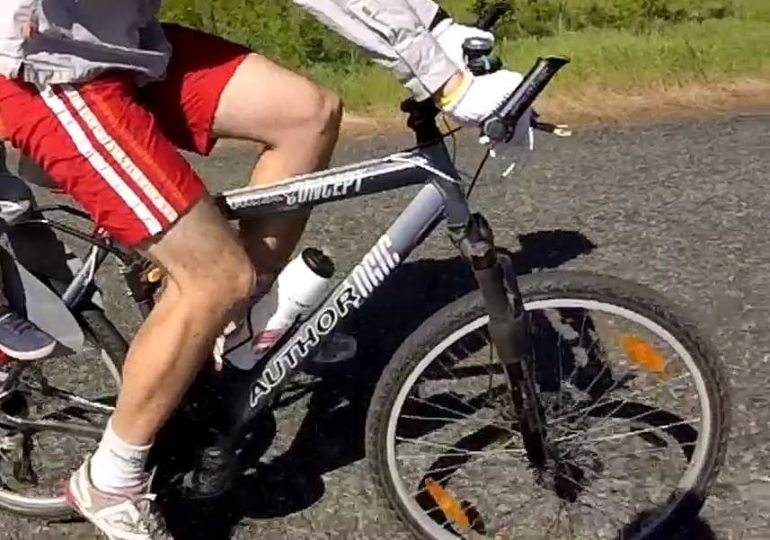 На спицах переднего и заднего колеса по 2 желтых светоотражателя (катафоты), сзади на трубке седла фонарик красный.