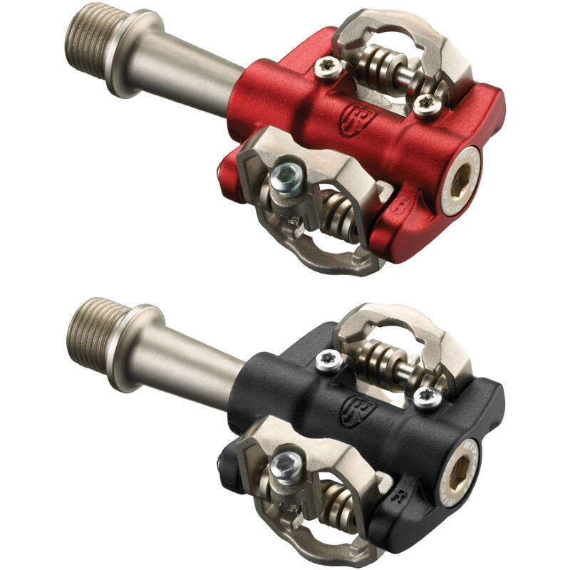 У меня когда-то были похожие педали и весили так же. Но в эксплуатации меня разочаровали. Попасть шипом в замок было тяжело, особенно на гонках в грязи они вели себя как хотели. Часто, чтобы выстегнуться, приходилось прилагать разные усилия, а иногда вообще с трудом выстегивался даже с мин затяжкой пружин. Потом появился люфт, который нельзя было устранить, т.к. стоял промподшипник. С тех пор купил шимано и пообещал себе и шиманам, что больше не предам их и не буду экспериментировать :tourist: