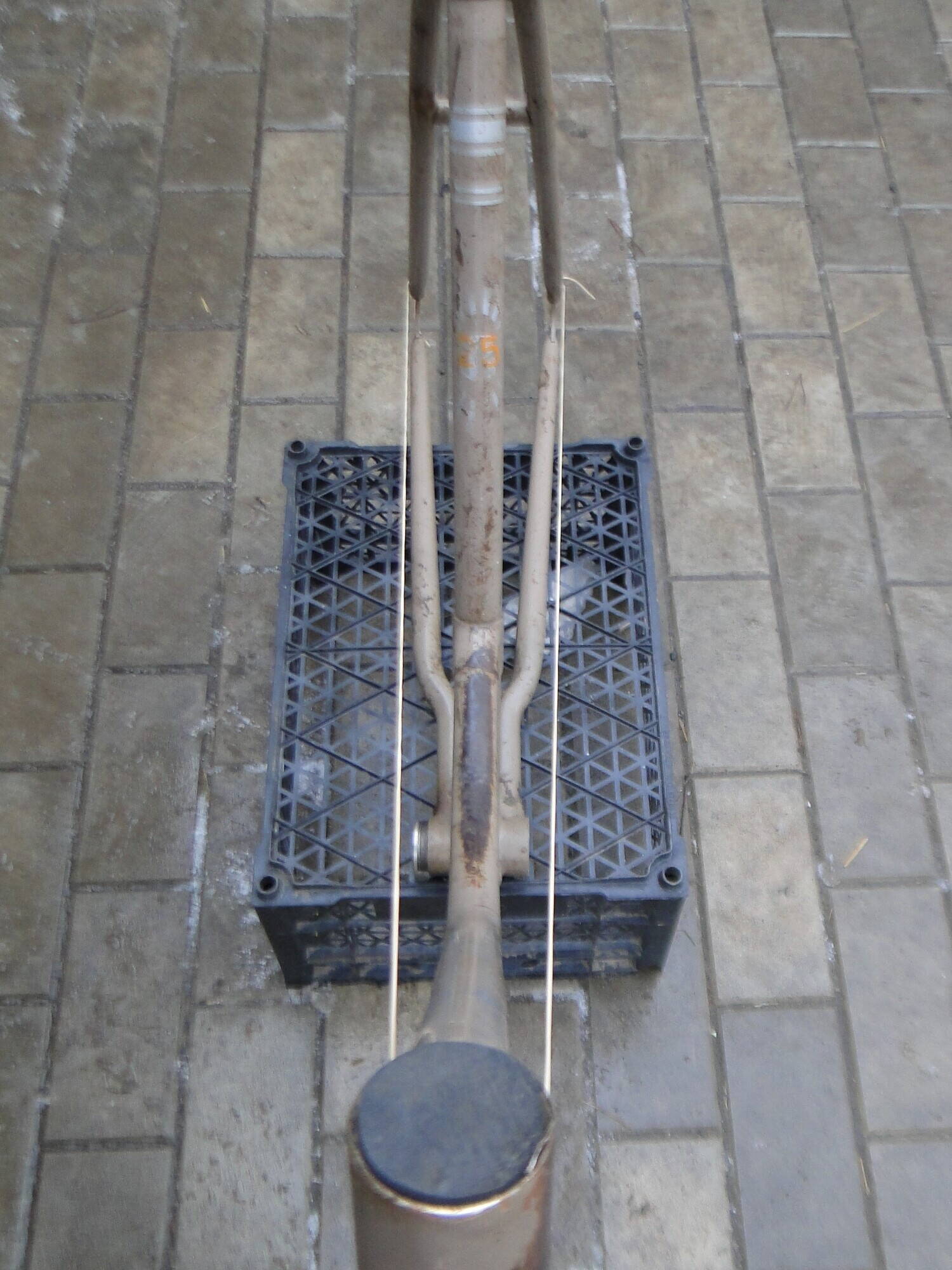Ну а передняя вилка не порадовала вообще. Видим, насколько правый (по фото) дроп был меньше утоплен в теле вилки при пайке на заводе. Думаю, что нужно расплавить старый припой, забить дроп глубже, запаять его латунью заново.