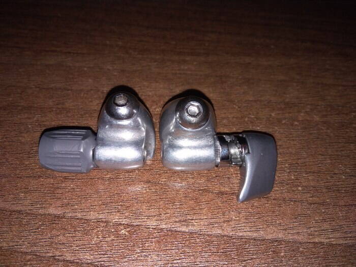 Интересуюсь из любознательности. На правом нарамном упоре флажок, на левом крутилка, в итоге разница веса между упорами почти вдвое. Функции, что левый упор, что правый, выполняют одинаковые. Вопрос: зачем металлический флажок и почему не пластиковая крутилка? Кстати, флажок есть на ультегре и на 105 вродеб, на соре по моему по обе стороны были крутилки.