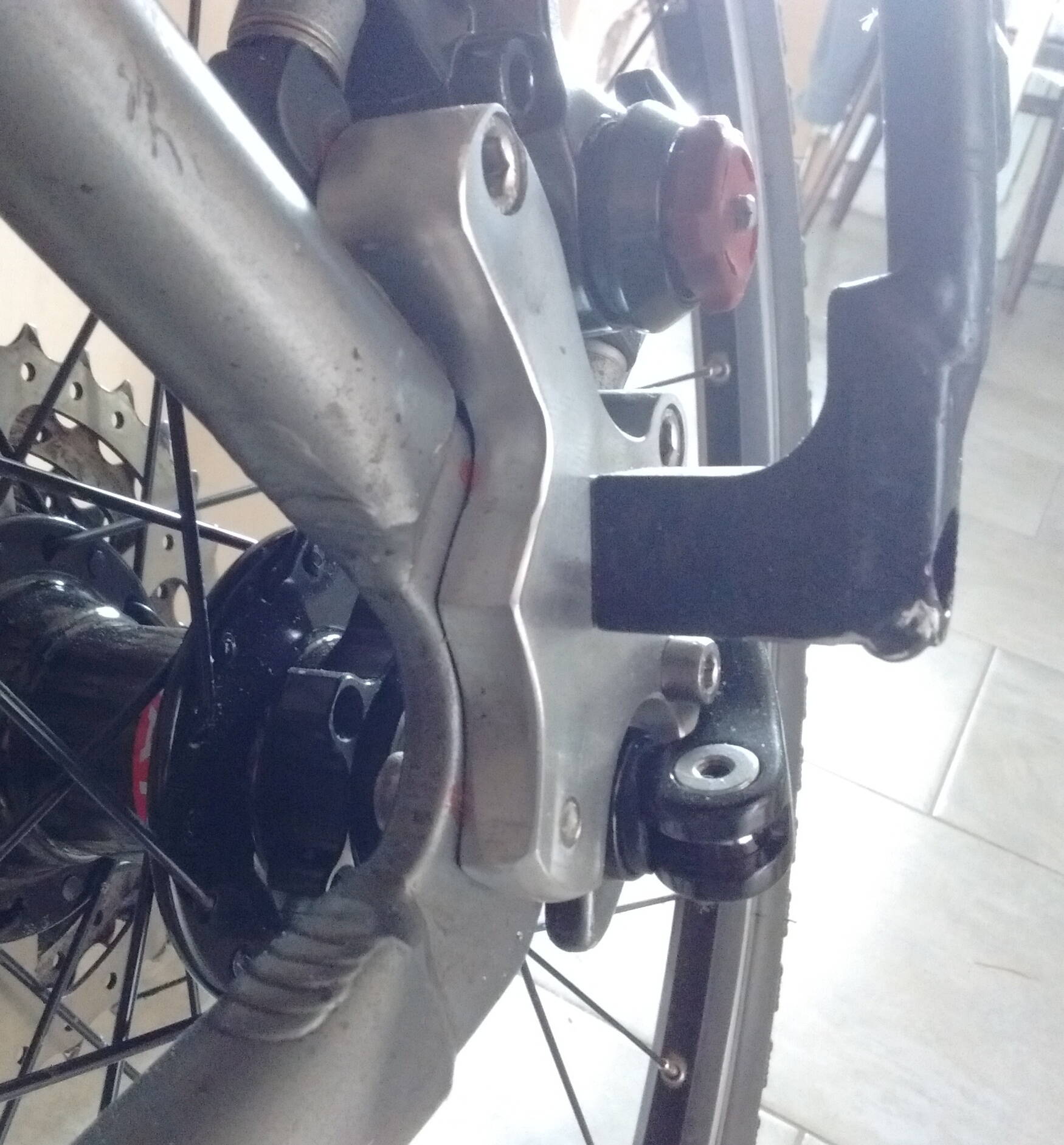 мне Ваня Швыдко допиливает адаптер под задний калипер на раму без крепления под дисковые тормоза, чисто вибрейковую.