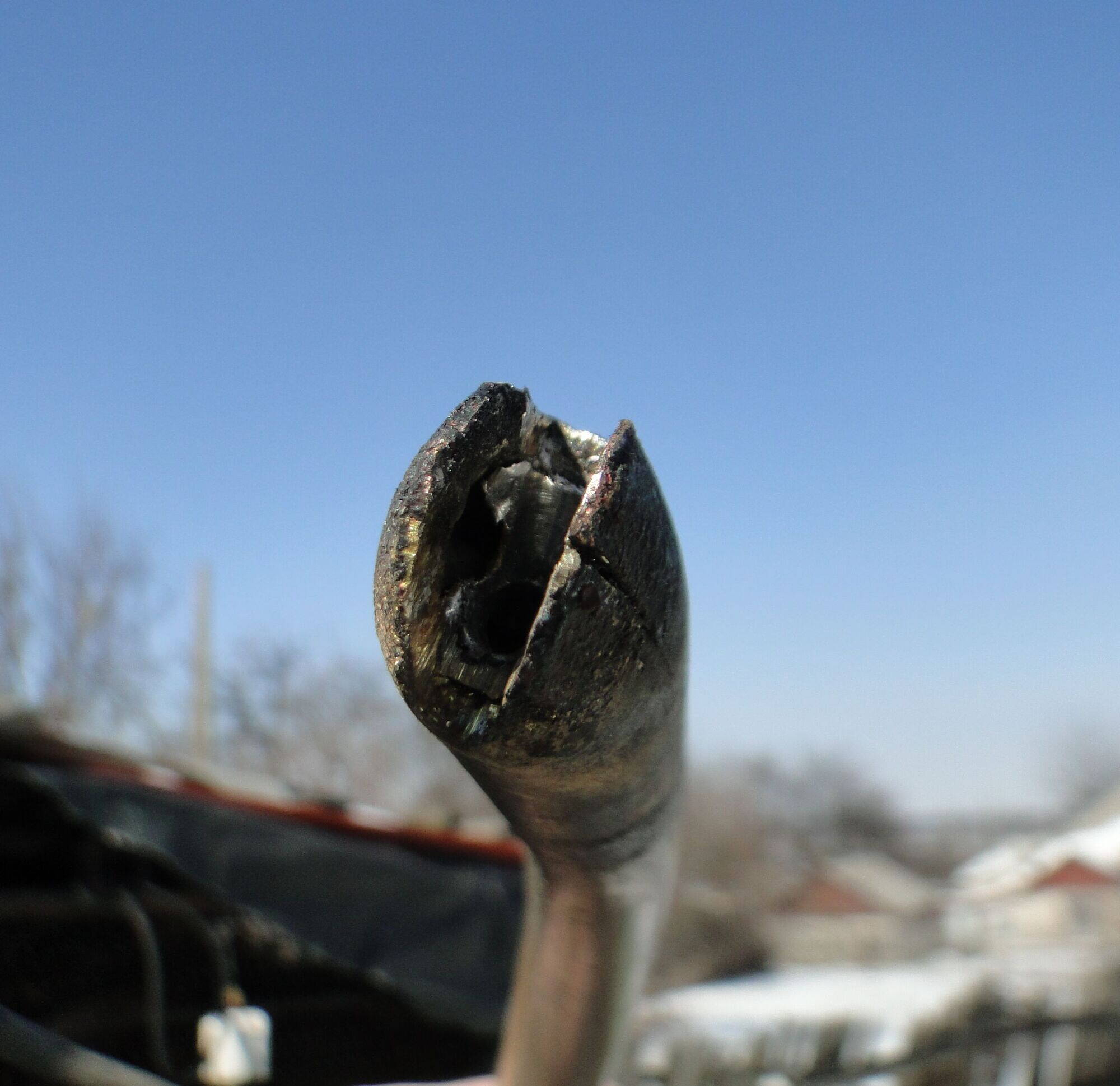 4. Обломок из пера был извлечен в такой последовательности: плоское отверстие на конце пера под дроп было немного расширено, все было хорошо прогрето, в ранее высверленное отверстие помещен тонкий саморез, который позволил потянуть обломок, окончательно удалив его из пера.