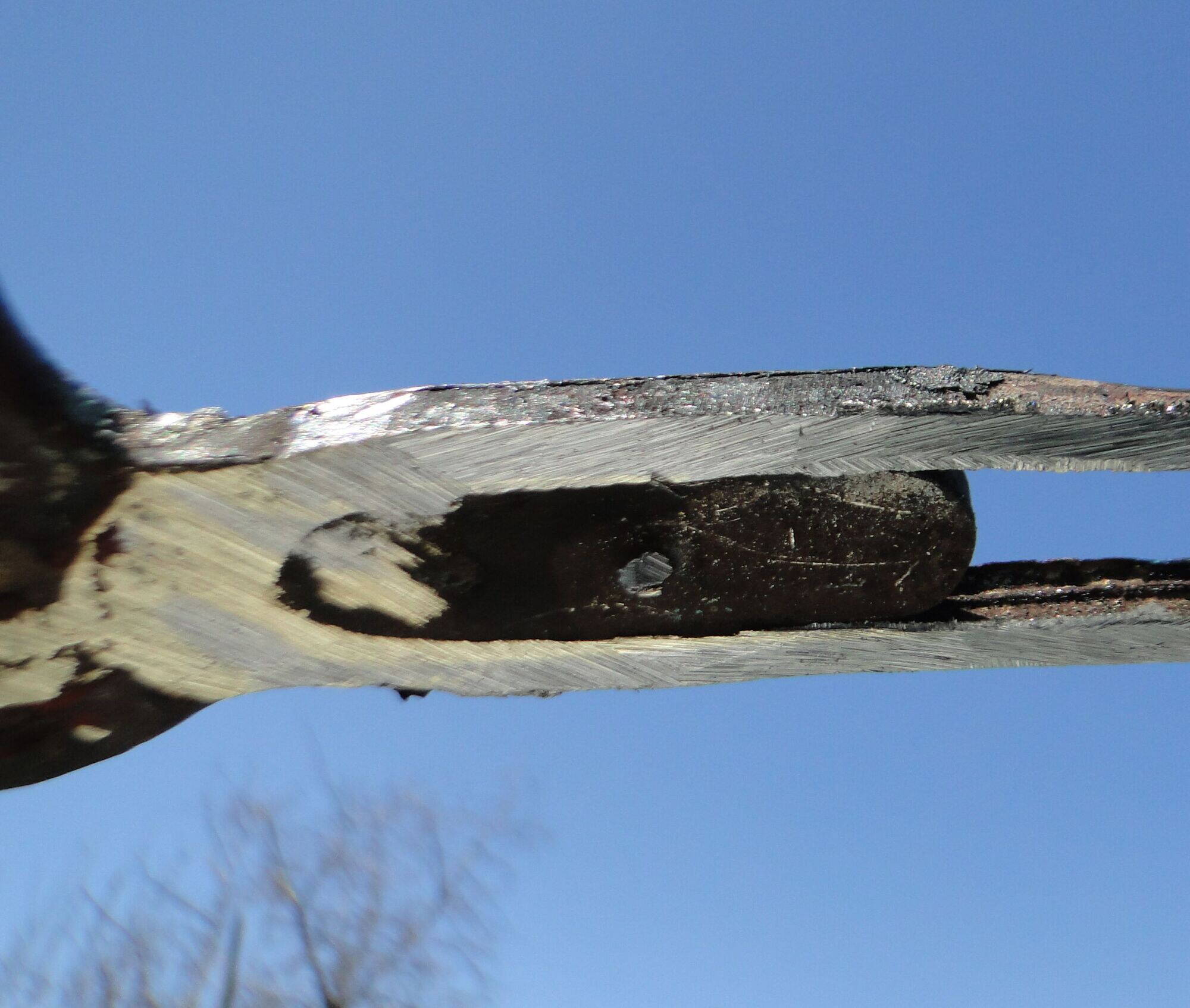 На фото хорошо видно наплавление латуни в местах среза (догадывался, что в пере он держится крепко, но чтобы настолько...).