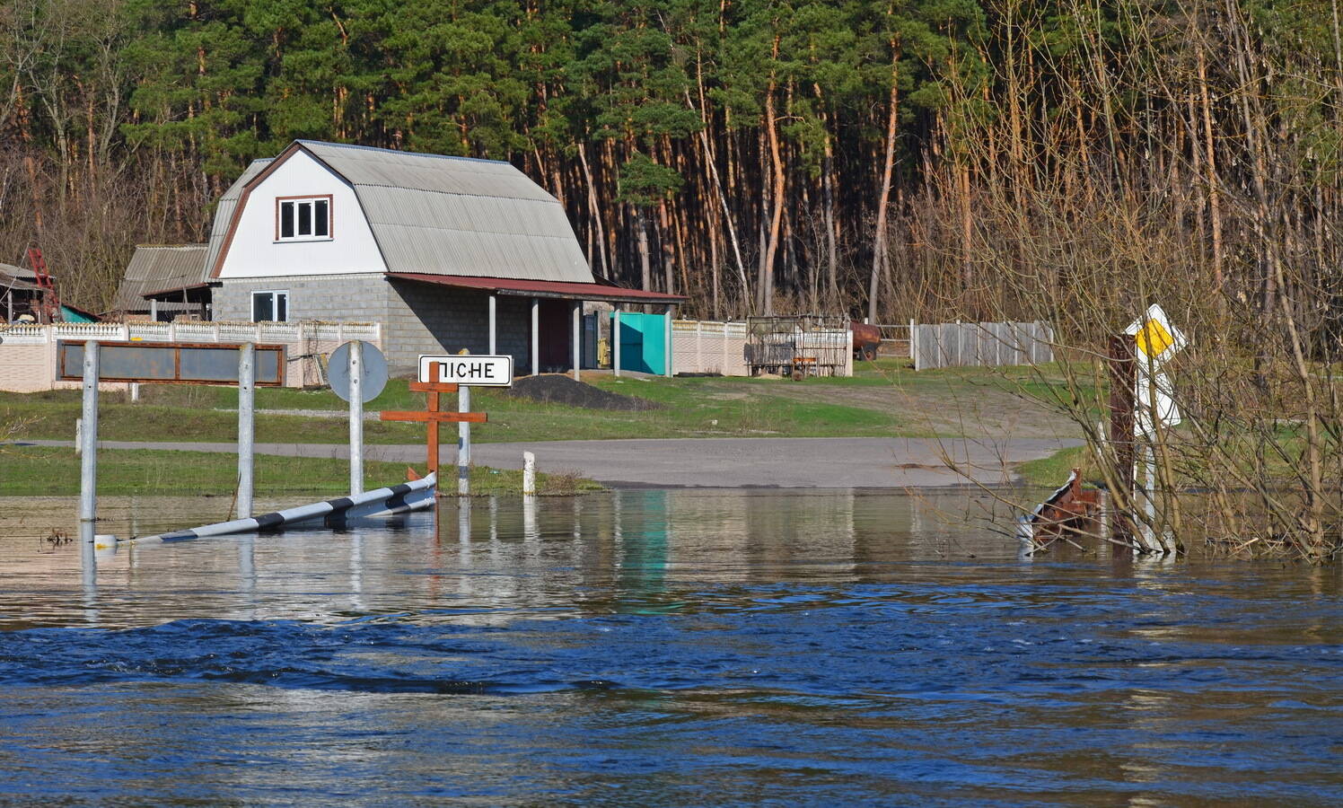 Вода конечно начала спадать... Но... Мост Лесное-Мохнач на выходных 14-15 апреля такой... Но вода начала спадать - это факт, где-то 5см за ночь уже упало. На мосту завал из мусора. Туша кабана просматривалась. Так что даже если вода спадет... проезд не факт, что будет приятным.