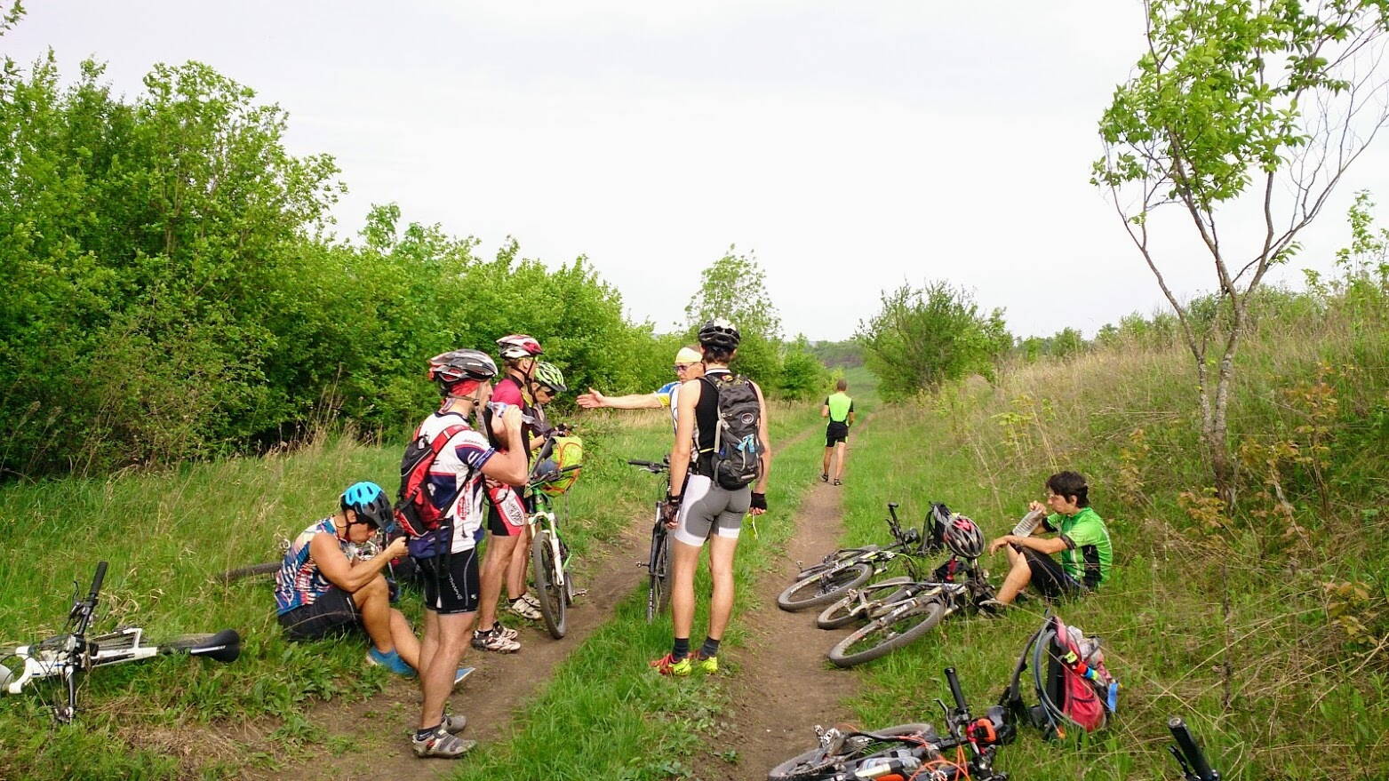 Вот и побывали в Огурцово, и снова полазили по волчанскому аэродрому :cool:. Контрастный такой денек получился, и по погоде (до 11 дня думали хоть бы так целый день было, но не тут-то было :sun:), и по маршруту всего понемногу :-P. Колодец в Старице, так всеми желанный, оказался не пригоден к питью из него из-за очень мутной воды и высокого уровня грунтовых вод по ходу. Огурцово все также прекрасно, но на подлете к нему одного нашего спортсмена спідкала невдача :velo3:, - на подъеме каким-то образом в заднее колесо попал переклюк и был там без шансов перемолочен. Уже буквально на отъезде вежливо пообщались в нашими пограничниками :kozak: и продолжили дальше путь к аэродрому. Все больше и больше растаскивают на металл тамошние "экспонаты", больше достается Ми-2 и Ан-2, Л-ки в том же состоянии как и были. На обратном пути с попутным ветром на высотах было видно как где-то вокруг нас идет дождь, но нам не перепало ни капли :no:. Между Замуловкой и Украинкой повстречали Ози и К', встреча покатух на просторах :beer:. Хорошо и качественно проехались в общем, всем участником спасибо за компанию! До новых встреч!