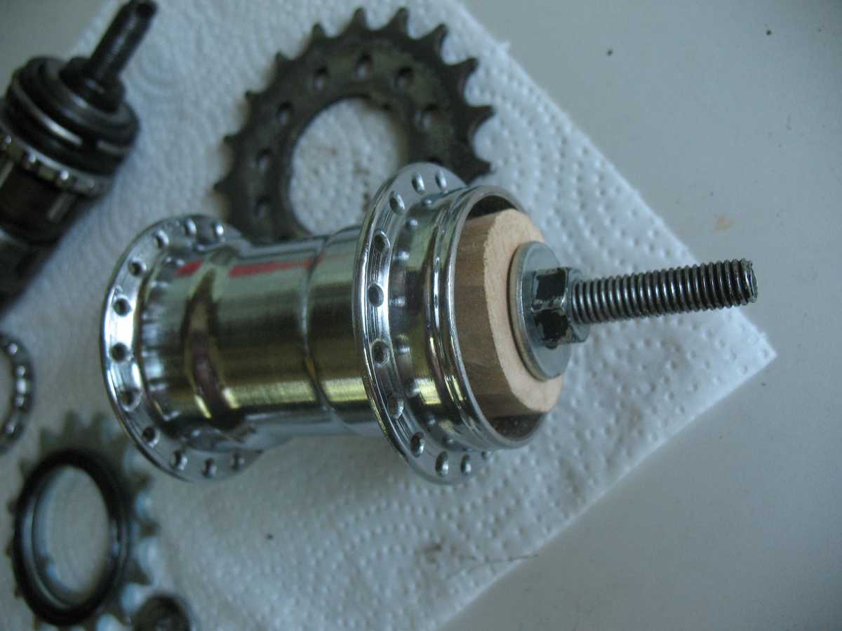 - якщо затягнути втулку сильніше, то гуркіт майже пропадає, але вже з'являється тертя і втулка починає гальмувати колесо