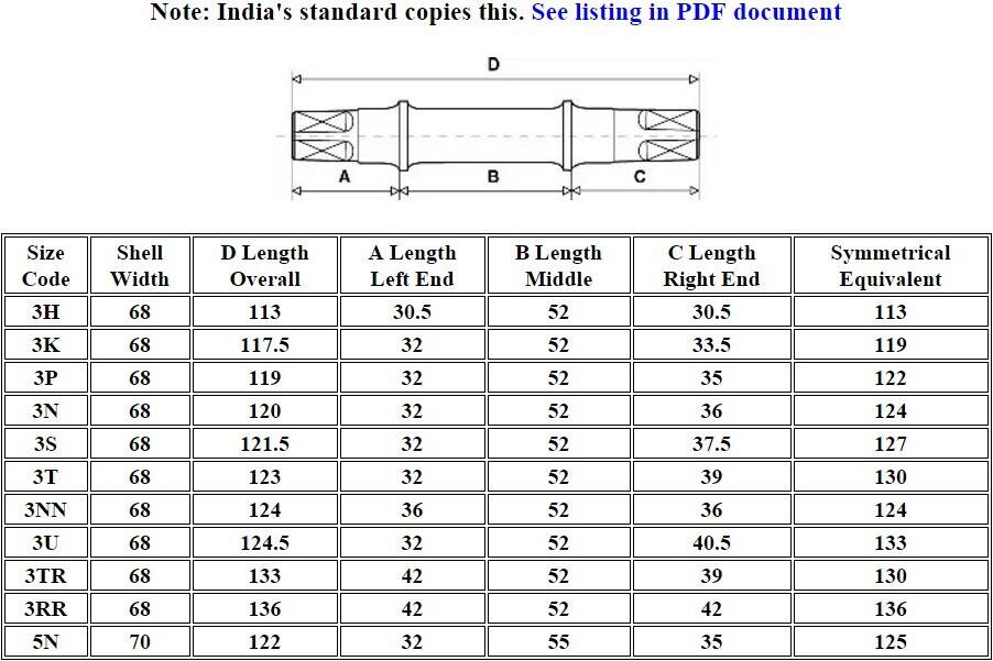 Каретка полностью симметрична. Длина выступающих из корпуса концов вала одинакова. Вот типа такого - фото не мое.