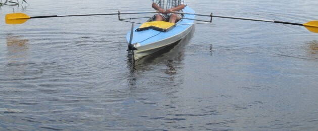 Все інше було зроблено із доступних матеріалів, збільшив довжину весел і поставив стерно ("руль"), який міг фіксуватись і бути як стабілізатор курсу.