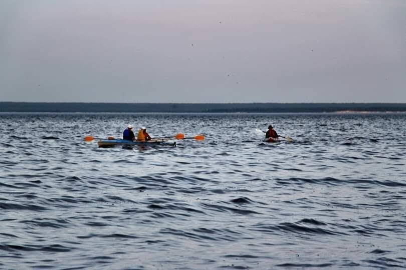 В результаті збільшилась аплітуда гребка і до веслування підключились найсильніші м'язи - ноги і спина, що збільшило швидкість байдарки і кілометраж денних переходів.