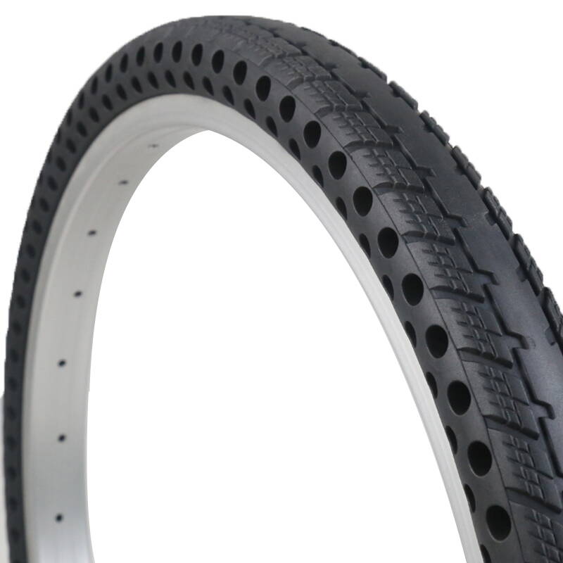 Безвоздушная антипрокольная перфорированная покрышка имеет массу преимуществ. Она не может потерять форму и стать негодной для использования от прокола. Её ресурс больше чем у обычных безвоздушных шин. Отлично показывает себя как на морозе, так и на жаре. Размеры в скобках-это внутренняя ширина обода. У нас вы можете заказать такие размеры: