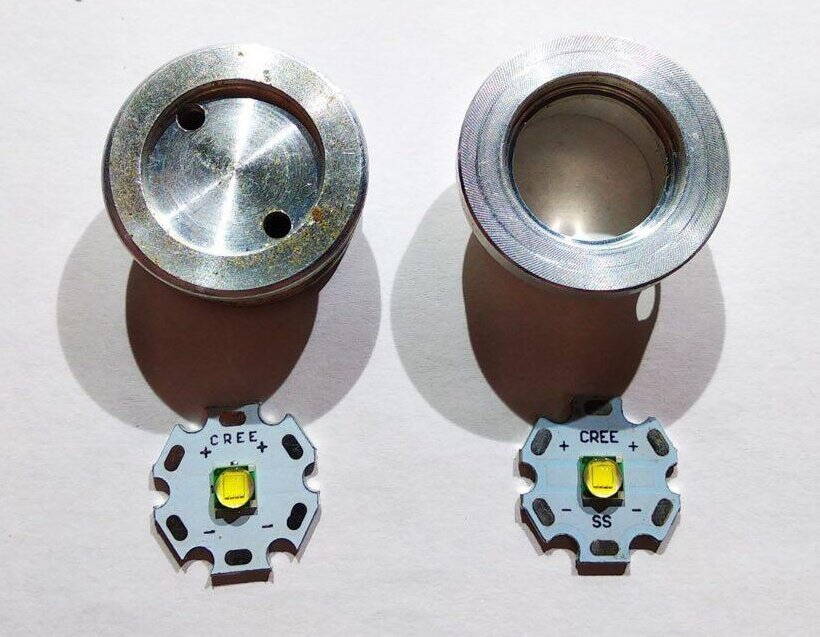 Уже вырисовывается :smile: Драйвер дохловат правда, если я правильно нашёл его характеристики. Светодиод будет светить в треть своих возможностей. А врубить на полную три килолюмена было бы эффектно :D
