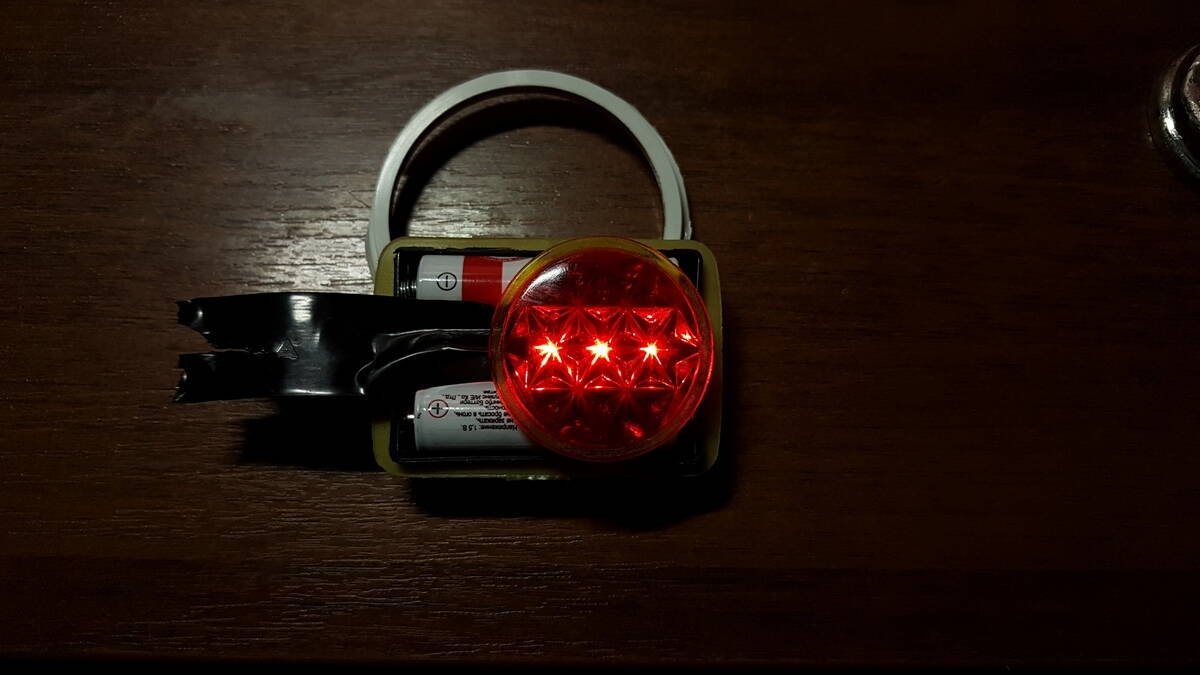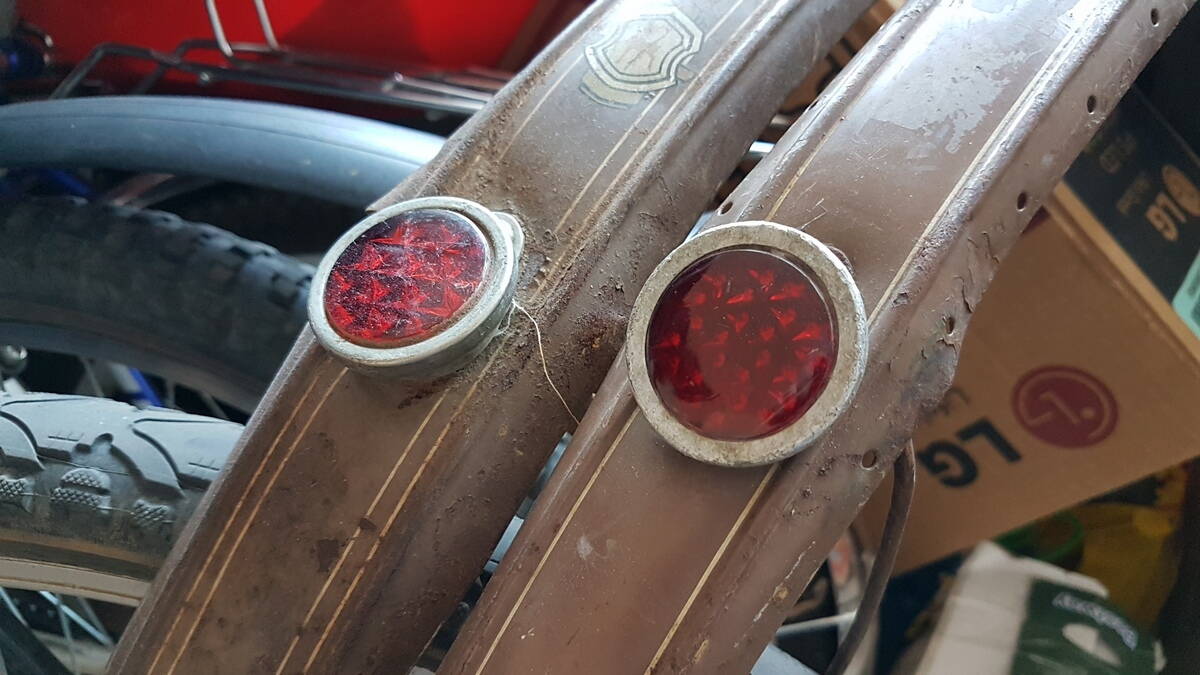 Отойду я немного в сторону от передней вилки и затрону тему... заднего катафота. Вместе с дамкой В-25 шло заднее крыло с катафотом пуговицей, а т.к. я получил визуальный доступ к залежам знакомого в узких кругах Гриши Энергетика, то выцыганил у него ещё и второе крыло с таким же катафотом
