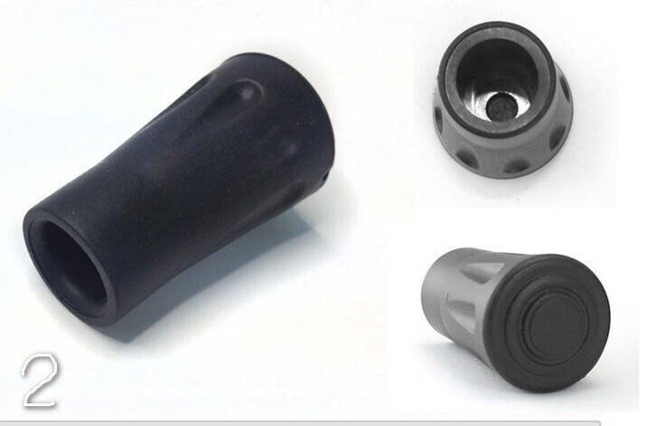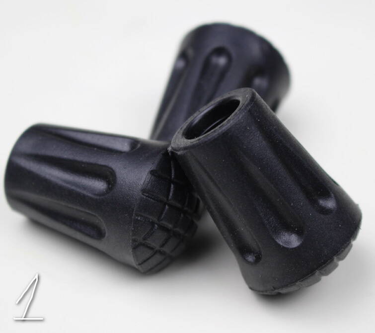 3. Универсальные башмачки для скандинавской ходьбы. Массивные и тяжелые. Подходят к большинству палок китайского производства, имеющих удлинённый конусный наконечник.  Длина 51 мм, глубина 38 мм, посадочный ø 11 мм, вес пары 76 г. Изготовлены из твёрдой резины, предназначены для конусного наконечника.