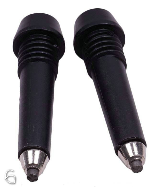 5. Конусный наконечник с твердосплавным наконечником конусной конструкции с повышенной износостойкостью острием. Не рекомендуется использовать на плитке, асфальте и пр. без резиновых насадок. Внутренний ø 11 мм, наружный ø 10,5-12,5 мм, глубина 48 мм, длина 78 мм, вес пары 23 г.