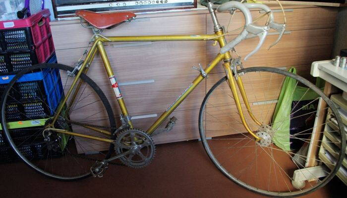 передний переключатель высоко от звёзд стоит.Расстояние от нижней кромки переключателя до окончания зуба большей звезды 2-3мм.А рама всё таки 81 года.Переключатель задний вообще антиквариат.Будет ходить ещё долго.И с обмоткой на руле ездить приятнее :smile: