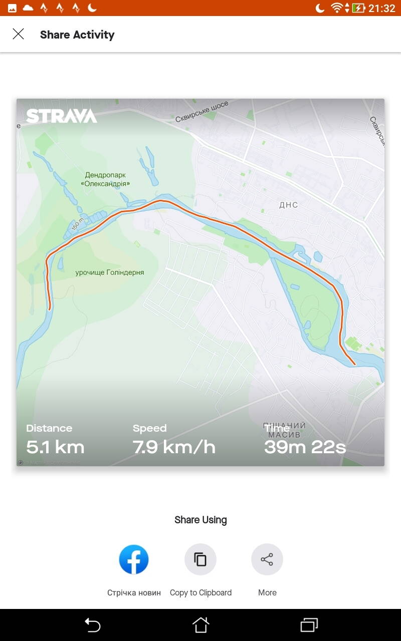 Вирішили установити STRAVA , щоб побачити результати ходу каркасної туристської байдарки з одним веслувальником під парними веслами. Течія на цій ділянці дуже слаба ( перед греблею), русло звивисте і повно на берегах рибалок.