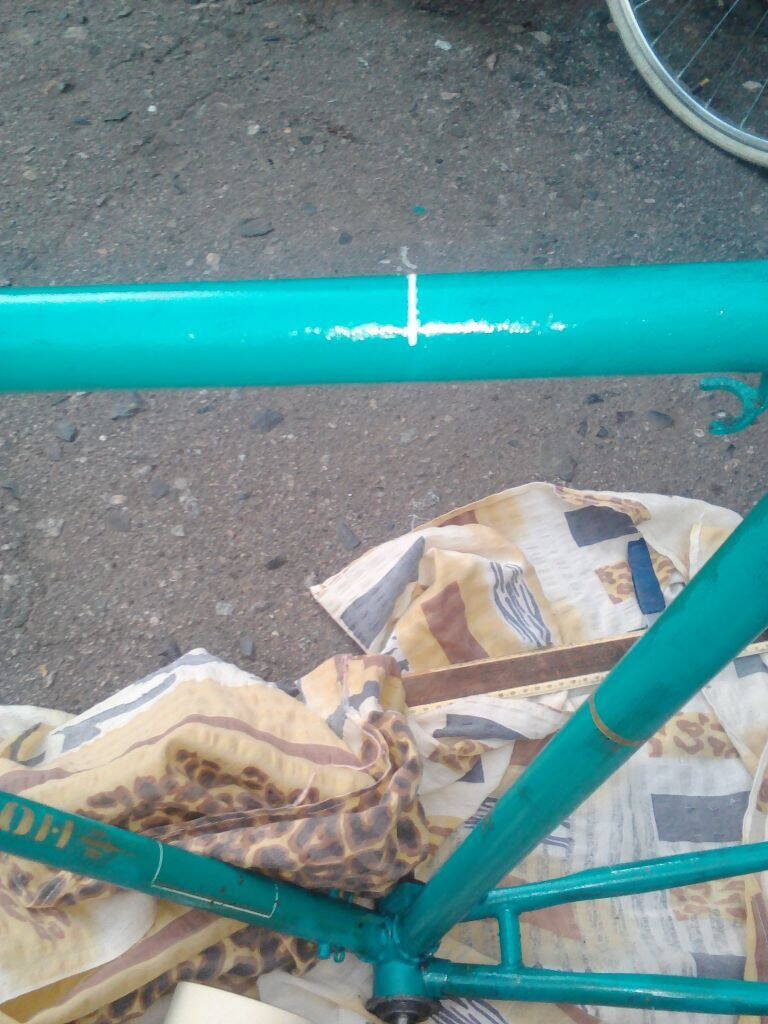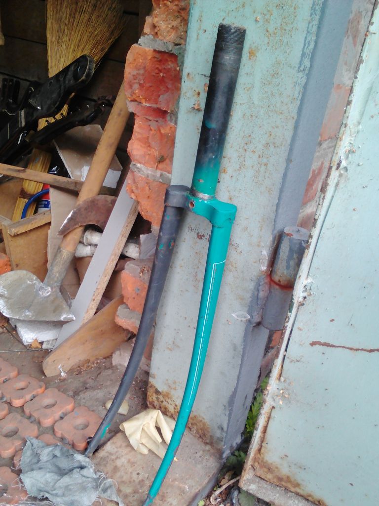 Сперва начал с вилки, дело пошло хорошо, затем рама. Кто-то пытался зачищать его до меня, тем самым уничтожив некоторые участки, особенно пострадала верхняя труба, но 68% родной краски удавалось спасти.