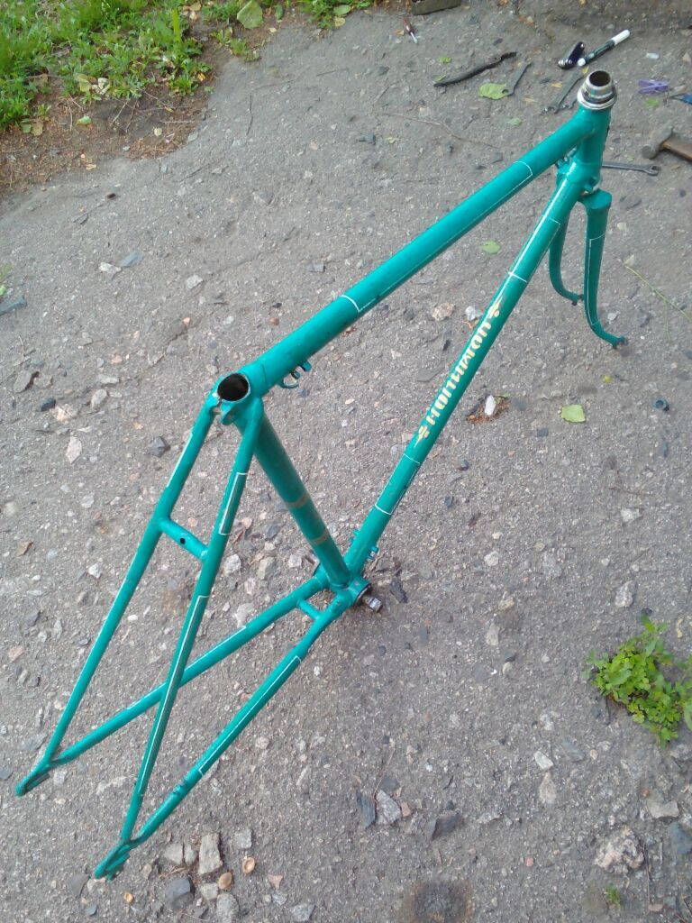 С рамой черного Чемпиона 60го пришлось расстаться, она и часть лишней навески была продана новоиспеченному поклоннику данной модели, и как переходящее знамя, эта многострадальная рама пошла дальше зажигать сердца уже новых фанатов. Она принесла мне и радость, и разочарование, и опыт, надеюсь сейчас ее нормально покрасили, и она бодро мчится по шоссе, радуя глаз окружающим и своему нынешнему владельцу...