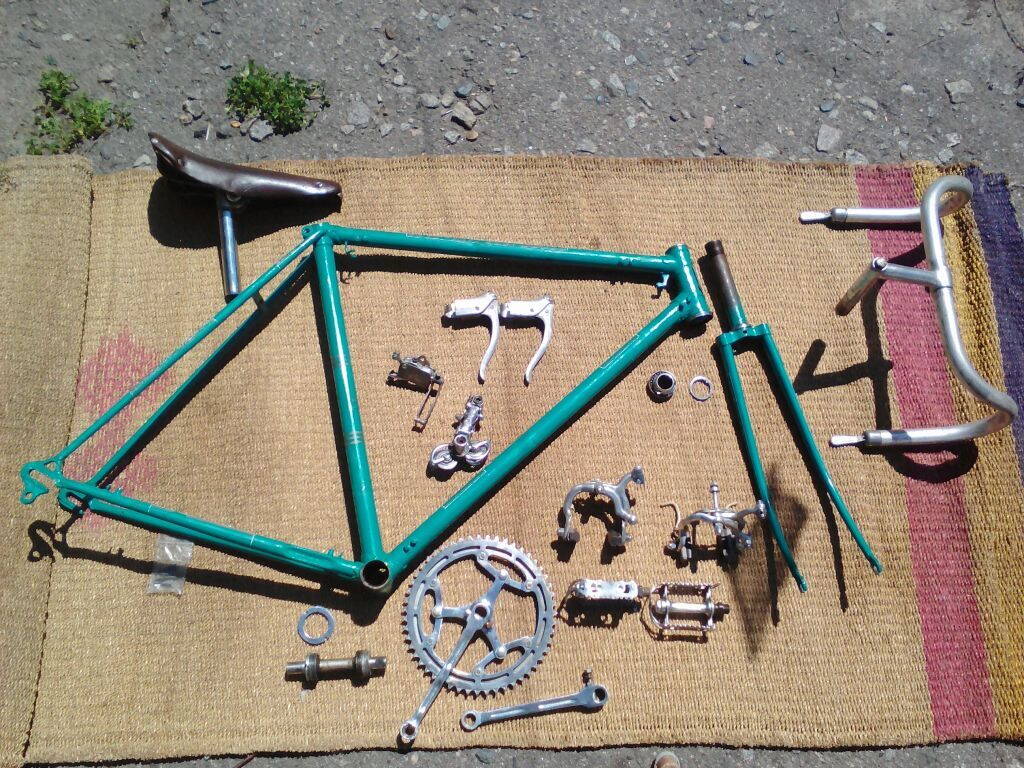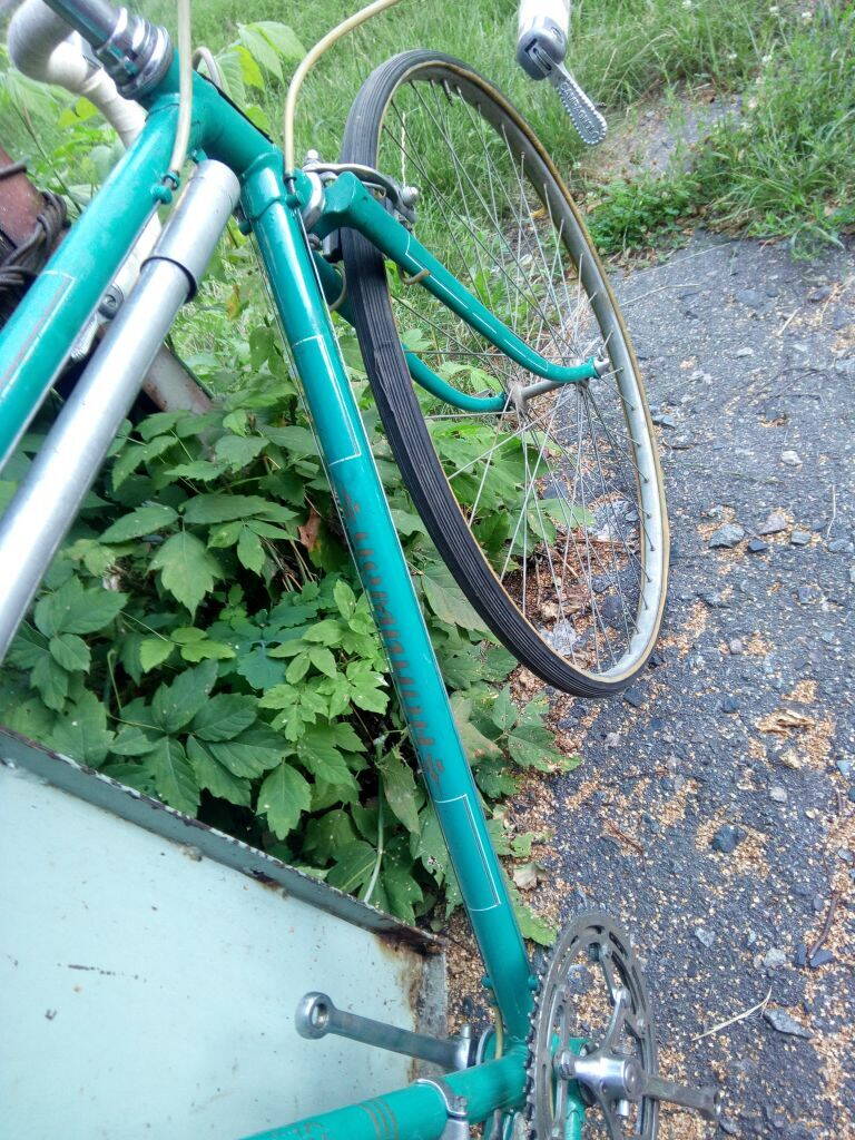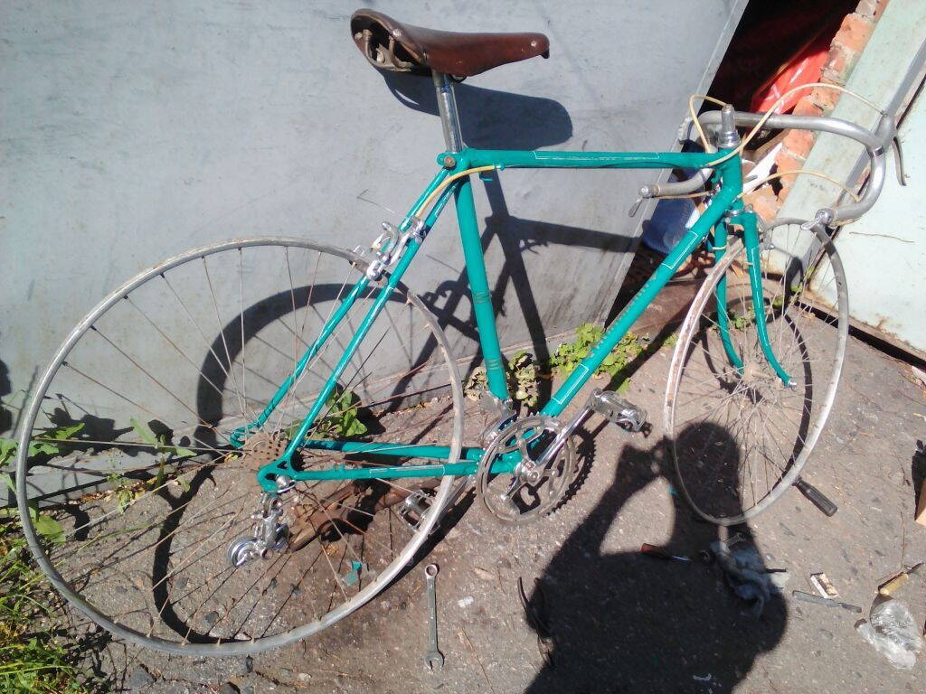 Наконец-то железо из ящика перекочевало на раму, стали проглядываться очертания того самого гордого шоссера, который был отцом и дедом не менее интересных моделей, что уже заждались пока он займет свое почетное место среди их ретро тройки "ранних". Конечно еще нужно было восстанавливать колеса, найти родное седло и родные манетки, но в целом Че 61го уже был очень близок к первоначальному виду.